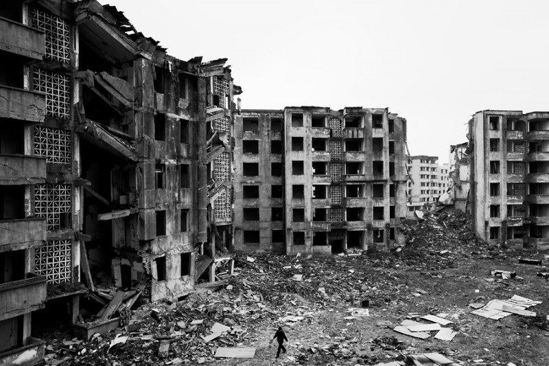 The images in this series were made in February, March and April 2009, almost one year after the Sichuan earthquake. They offer a glimpse into the daily life of residents and survivors in Dujiangyan, Jiangyou and Ping Le, Sichuan Province, China. Several million families were still living in relocation camps and had spent the winter without permanent shelter. 42.000 aftershocks had been counted over the previous nine months, and many of the displaced survivors in the hard-hit areas were struggling to recreate a sense of normality.