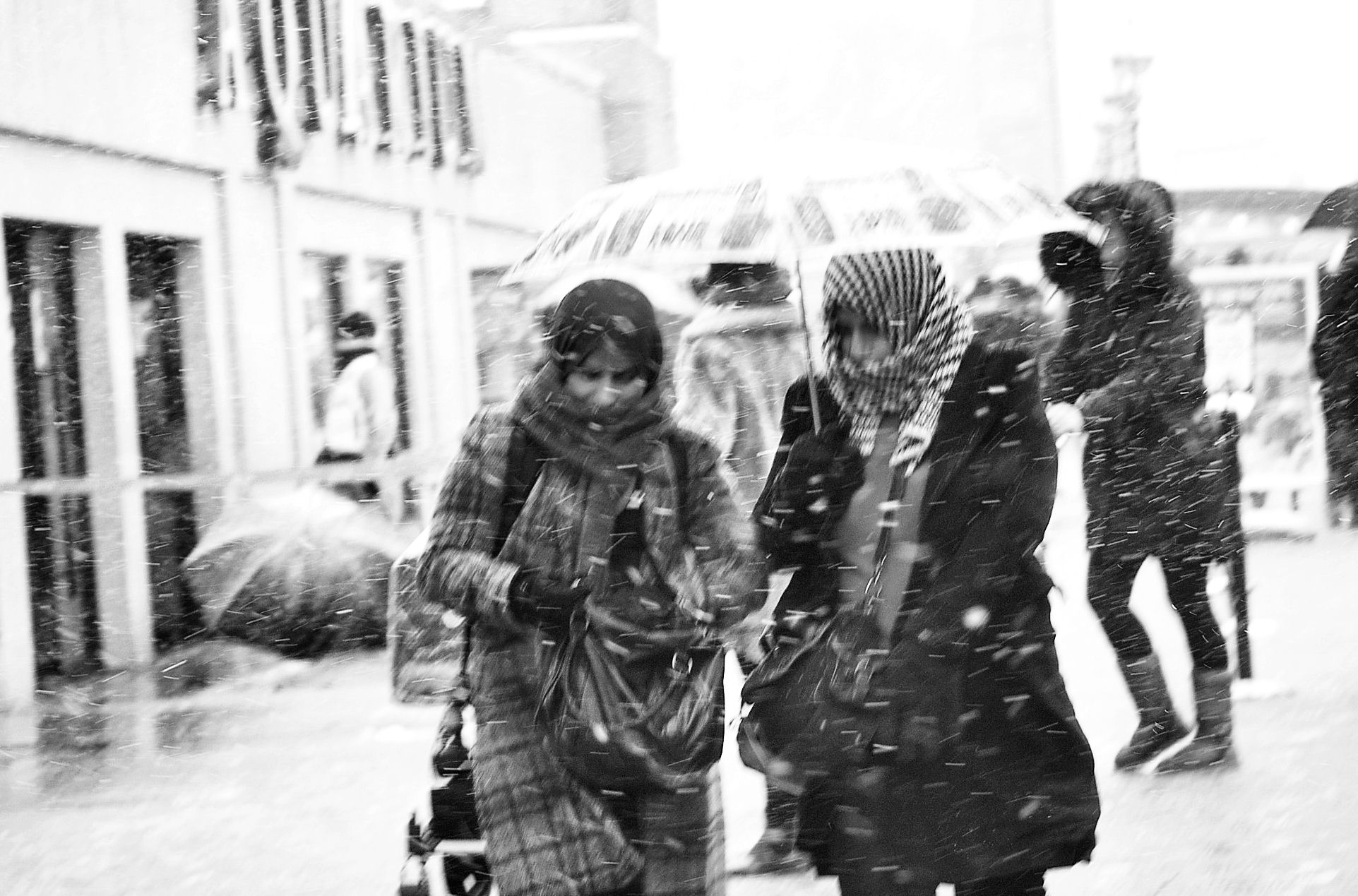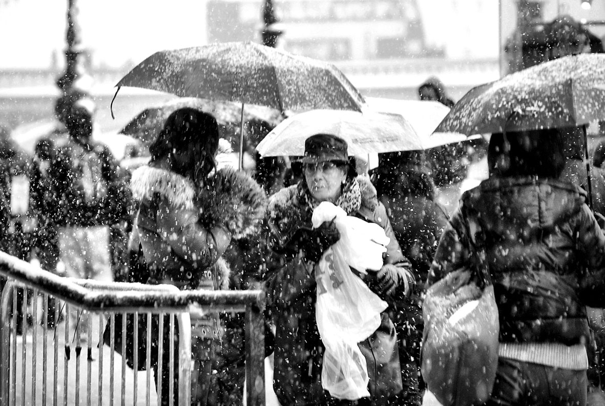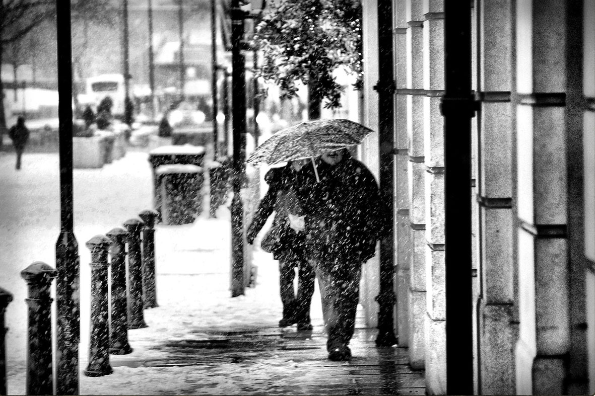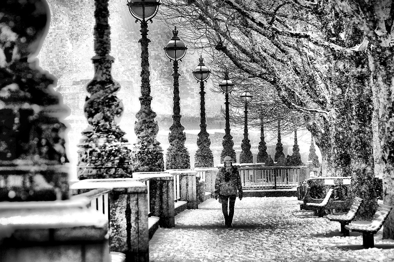 My project is intended to visually cover the London Snowy Day, which saw exceptionally heavy snowstorm, accompanied by high winds. The falling heavy snow and high winds meant that visibility was very low, making impossible to get sharp and well-defined images. Therefore I contended myself to obtain some interesting black and white shots showing the affected people.