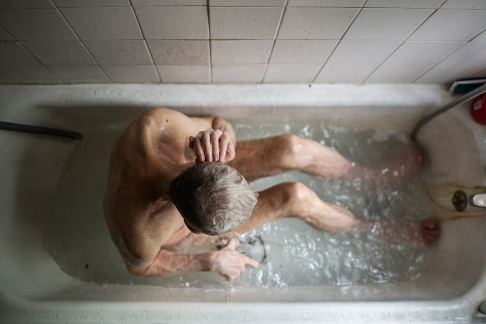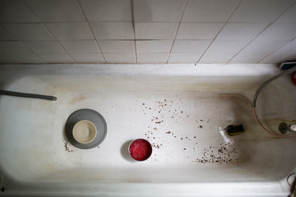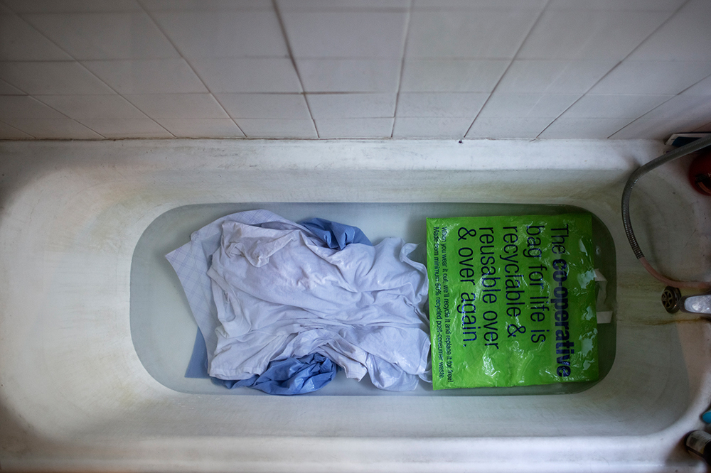 'George’s Bath' is an exploration of the world of George Fowler, 72, who is affected by hoarding. Focusing on a single location inside George’s four-bedroom house, namely his bathtub, this project detaches his condition from the clutter by that it is usually conveyed. Having lived at George’s house for two months, my attention was drawn by the constant changes taking place in his bathtub, often on an hourly basis, while the rest of his house remained under the mountains of accumulated clutter. As one of the only accessible spaces, George’s bathtub has become the place where he washes the dishes, does his laundry, stores items or repairs bikes, where he has his coffee, reads books and, last but not least, takes a bath.
