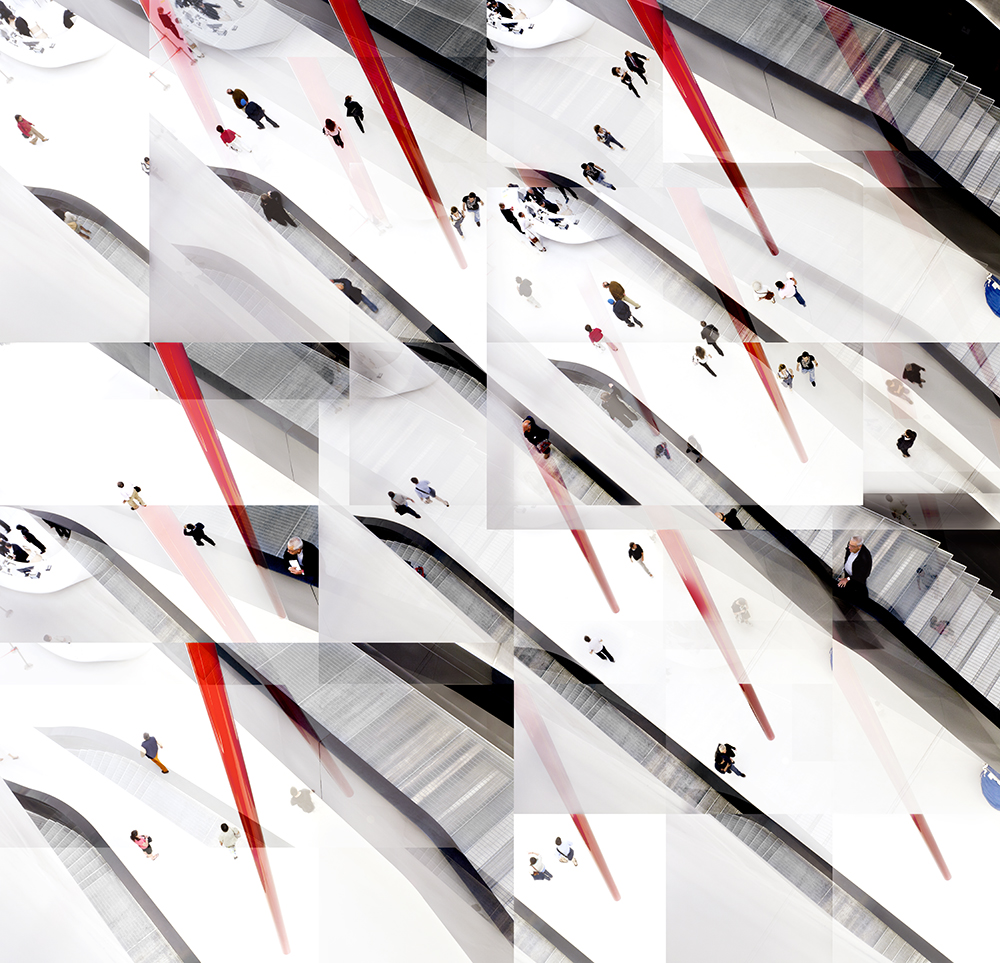 Rome is the city Mario Rossi sets off from and the city he goes back to; he is an architecture photographer in motion, who is artistically multiplied in his photographs. His focal points are human beings and the environment they live in, which is apparently repetitive, but with slight differences in scale and minuscule shifts in point of view. His photographs also express the continuity of space and time, for they are not classic shots but visions inherent in the act of dwelling in architectural space. Explorations that make every little detail, and every person, truly unique and unrepeatable. Mario Rossi’s point of view is influenced by his painterly vision of a place, which he transforms into a photograph. This interpretation derives from his personal study of the modern tradition, of the abstract-figurative “-isms†typical of the early twentieth-century avant-garde movements in the arts. The photographer sees photography as an existential experience, because it is itself a search for the formal relationships between elements, those which constitute and influence our knowledge of any environment. Mario Rossi sees planes, lines and colours as putting the human being at the centre of a place, incorporating him or her in its overall composition. Geometric patterns and photographic images come together in the work of this photographer, revealing the complexity of living to the viewer.