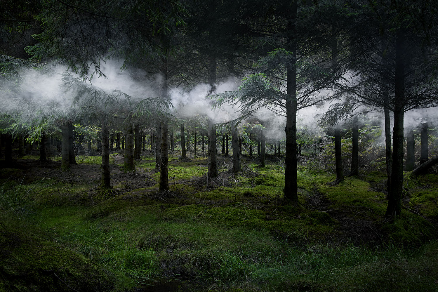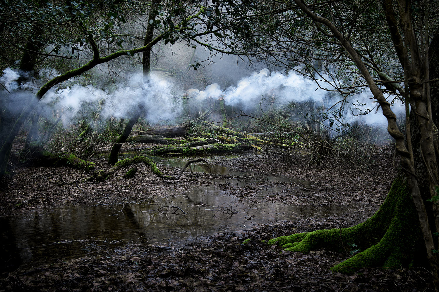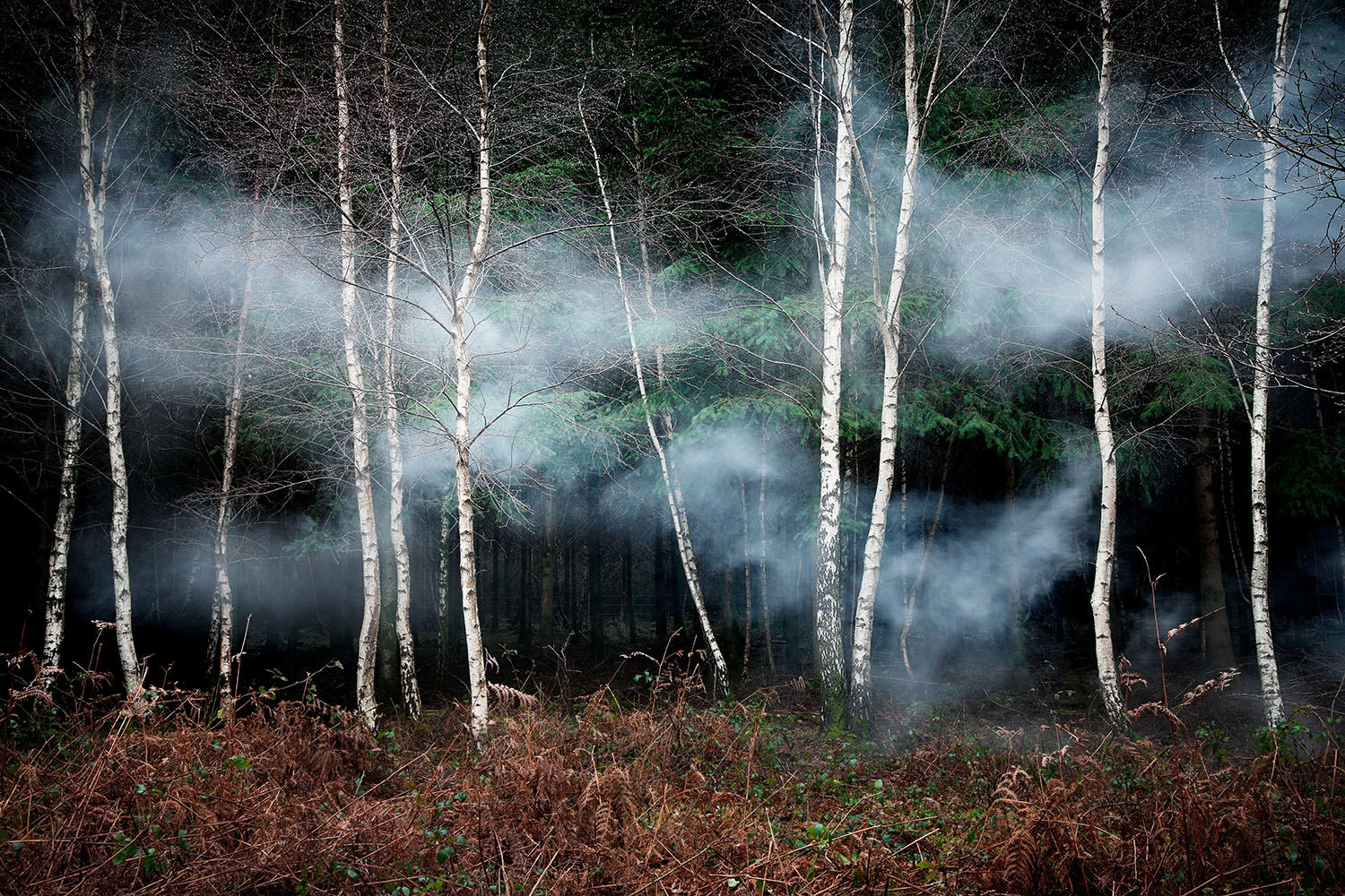 Between the Trees, 2014. What is a forest? Is it the trees or the space that exists between them? ‘A forest is what exists between its trees, between its dense undergrowth and its clearings, between all its life cycles and their different time-scales…A forest is a meeting place between those who enter it and something unnameable and attendant… Something intangible and within touching distance. Neither silent nor audible.* These images explore the nature and meaning of ‘Forest’ by considering the experience of standing alone in the woods; the eerie and captivating sensation that time has slowed down and that the forest and everything within it exists in a different state. Somehow set apart from our usual perception of linear time the wind drops, the air cools, all is quiet and still and the forest draws in. To enter this other place is to accept a slowing of time and a shift in perception. The swirling, hanging and drifting smoke allows us to observe time moving at an almost imperceptible pace, and to focus on the interior space that is very much part of the forest, guiding the eye away from the trees and allowing it to linger on this ‘betweenness’. Suspended and still, the smoke fills the spaces between the trees reflecting this physical experience: the palpable and brooding cognisance of the forest, the muffled and flattened sound, the prickling sense of heightened awareness. The mist fills the gaps to draw us into the spaces between. * John Berger in - ‘Hold Everything Dear: Dispatches on Survival and Resistance’, p.135-140 Verso, 2007.