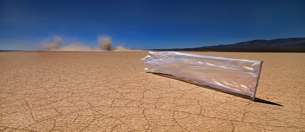 Plastic Landscapes 2014 Desert Plastic Landscapes is the metaphor for the disrespect people show to our Nature. We use plastic everywhere. Is this how the future landscape will look? Plastic will "grow" on trees? I have been working on the Plastic Landscapes since 2012 , here in Hawaii where I live. I incorporate plastic sheets in my landscapes. In 2014 I have made a trip to Death Valley, I have drove 2000 miles and shot for 12 days. All images below have been taken on that trip with Hasselblad H5D 60 megapixels camera . All plastic settings in the desert has been done entirely by myself without a help of assistant or a helper.