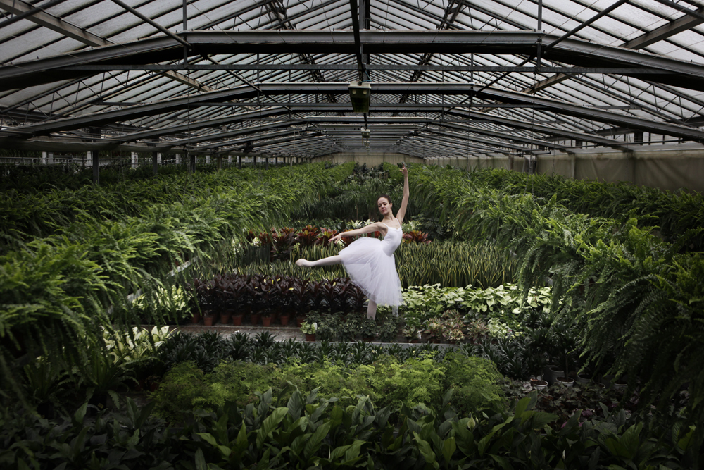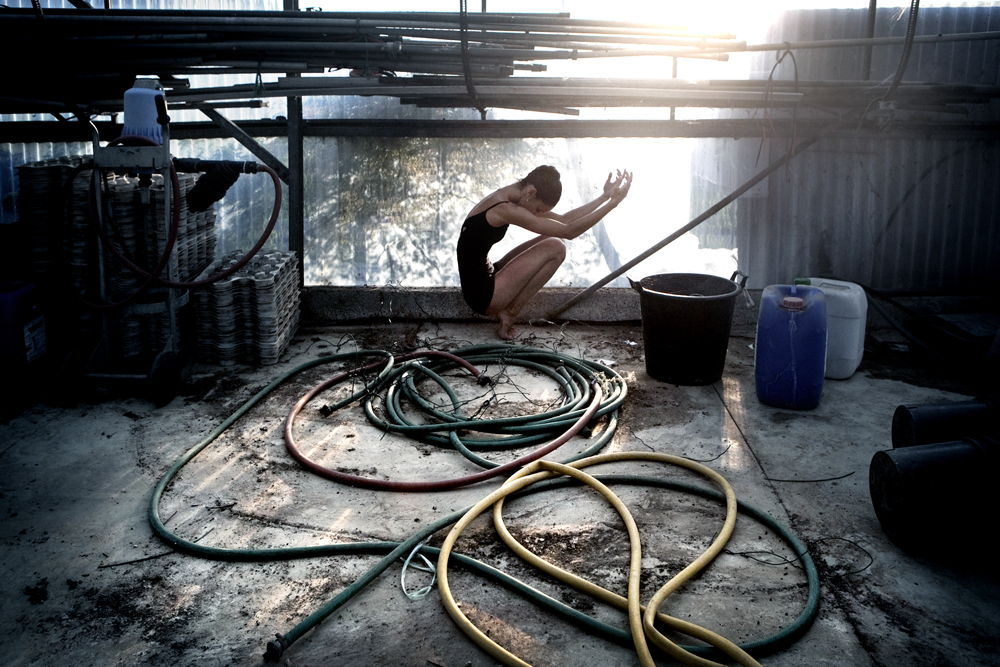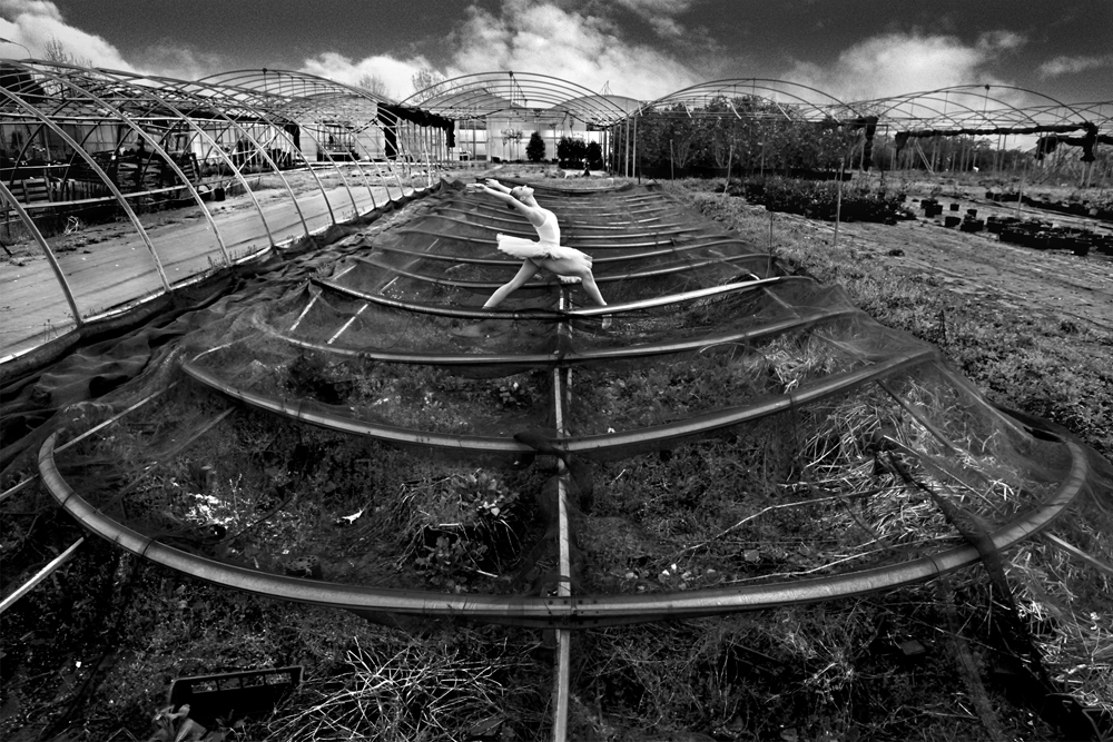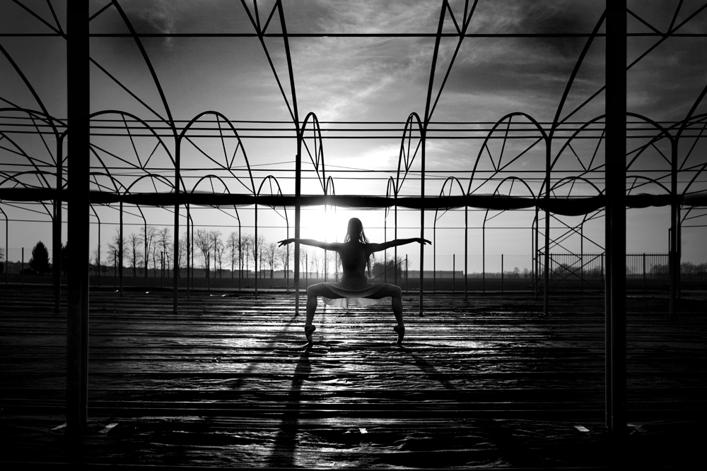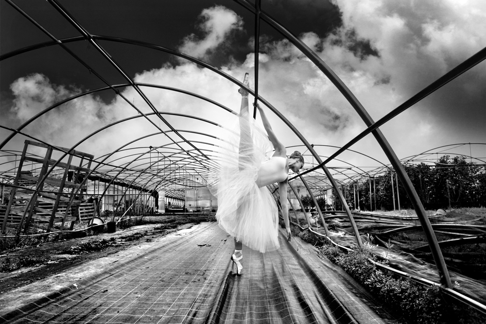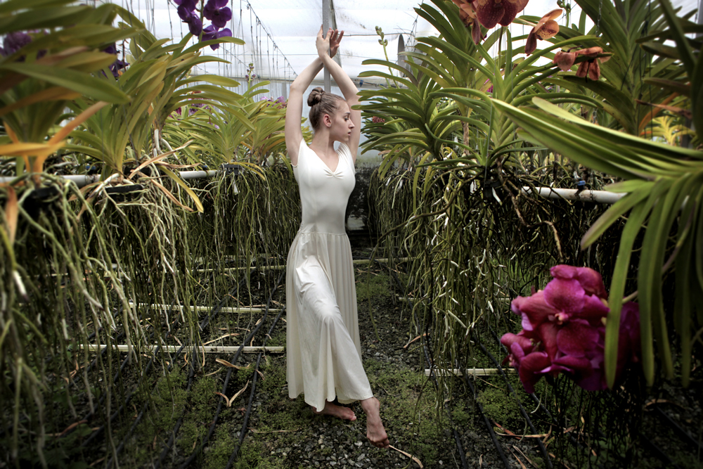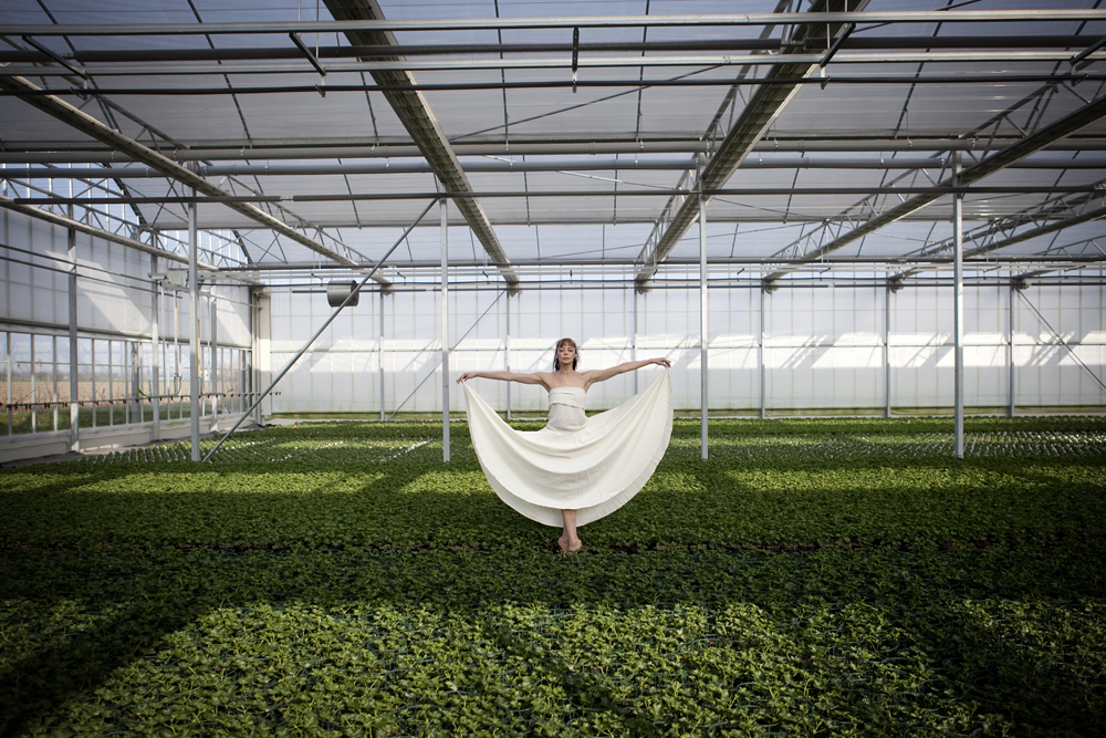 These are some photographs taken from my project named Green Attitude. All shots have been taken into different greenhouses, with all professional dancers. Gestures and control postures of a dancer are used to read the harmony of the body and the extraordinary ability to transform the physical effort until it becomes beauty. Admired by all this, we focus on the tensions of the body without imagining that his movements can be inscribed in a broader frame of reference as they were part of an order that all of nature is a participant. The Author has had the wonderful insight that all this is possible thus beginning a job that went to discover the harmony that binds the human gestures of dance to the reality that flowers and plants suggest. The structure diptychs allows you to easily recognize similarities truly amazing: on the one hand it seems that the leaves are lance-shaped to suggest the dancer posture of her legs, the other one can imagine that human nature and the living of a vegetable identical participation and vibrate in the same tune. Or maybe it's the photographer to have acted as a careful director of this brand new show.