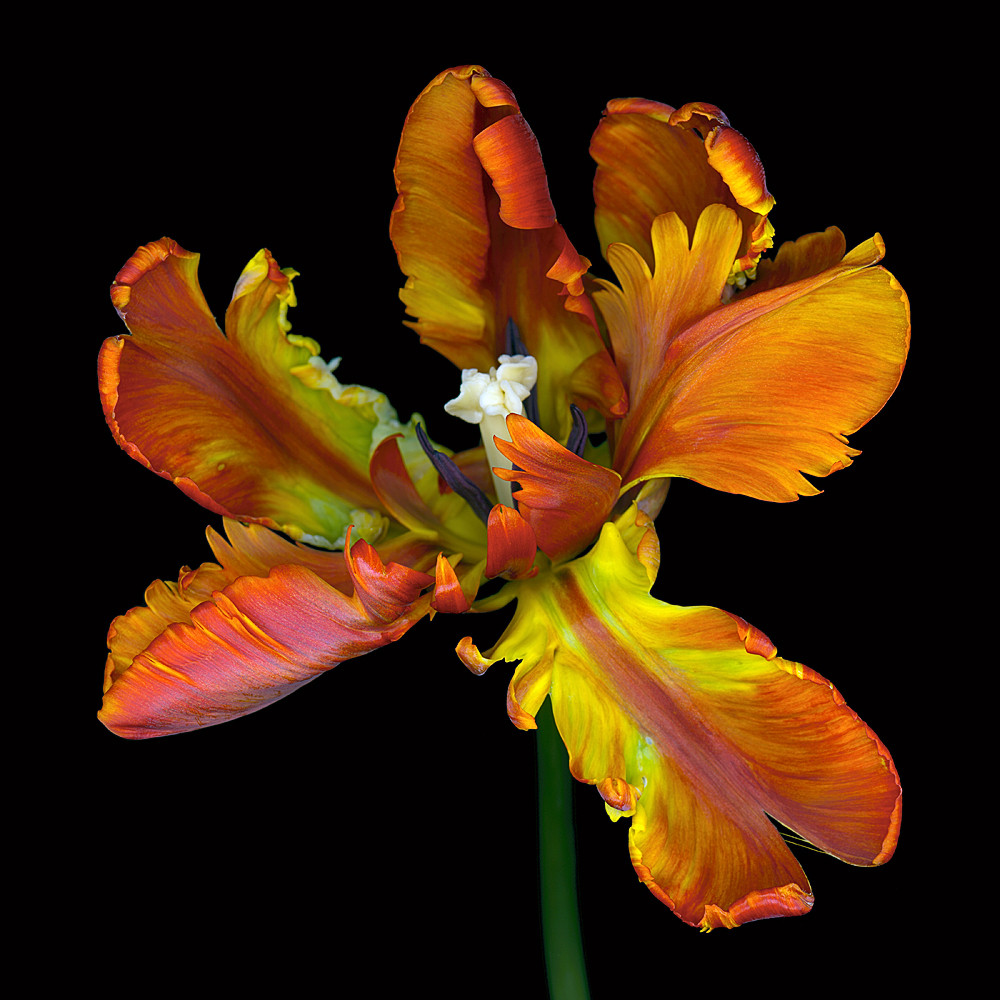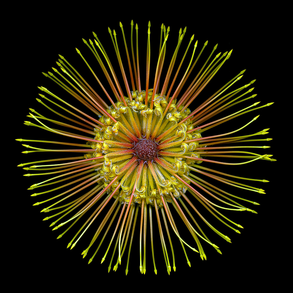 The inspiration for this series began in the depths of the Amazon. I was in the Ecuadorean rainforest shooting landscapes but found myself drawn to the small flowers on the floor of the rainforest. You can see complete ecosystems in these flowers if you look closely enough. When I came back to Los Angeles, I spent months experimenting with technology until I was able to recreate these highly detailed views. I developed my technique by combing technology from NASA and Nikon. I compress dozens of layers of photos together for each image and then enlarge them enormously. The technique show details that were not possible just a few years ago – you will see details you normally would not even notice, like the tiny hairs on an orchid. I truly believe it will forever change the way you look at flowers.