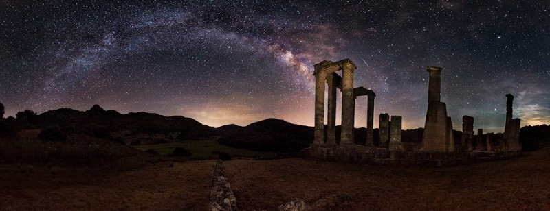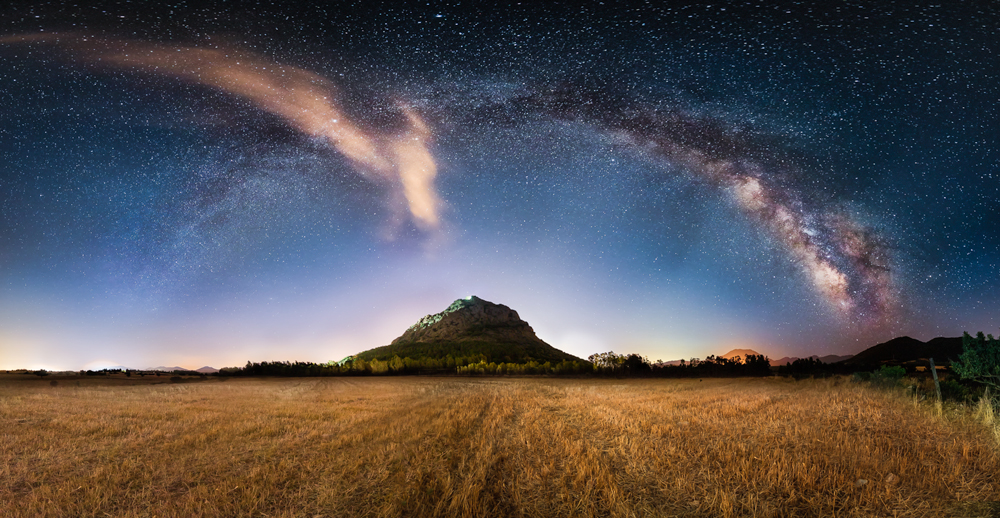 Panoramics of the milky way arch in beautiful places in Sardinia (Italy). Nightscapes are the main subject.
