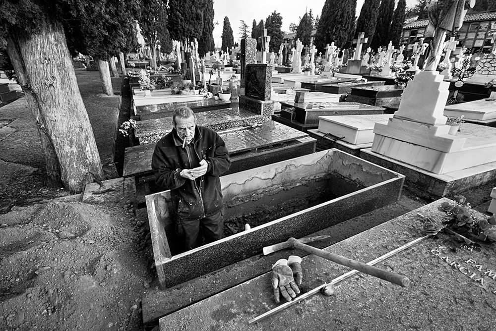 AMADOR RABAL, UNDERTAKER - JESÚS PASTOR I have always been fascinated by the stories at the border of the apparent daily normality. Inside the cemetery, a man wanders along crucifixes and colorful flowers cleaning golden letters and headstones. I watch him as he digs into the sunny land. His job may repulse some, but he carries it out with the dignity of a gardener who nurses his plants with love and dedication, watering them care. His name is Amador Rabal. Undertaker by profession.