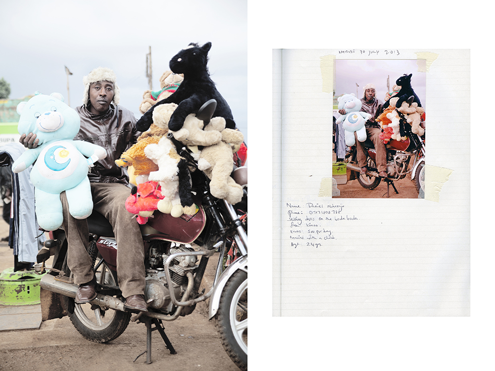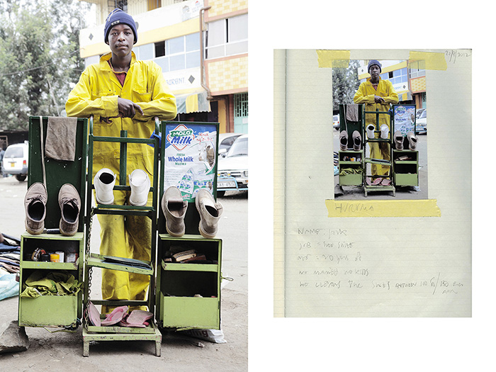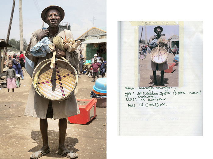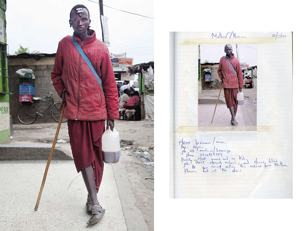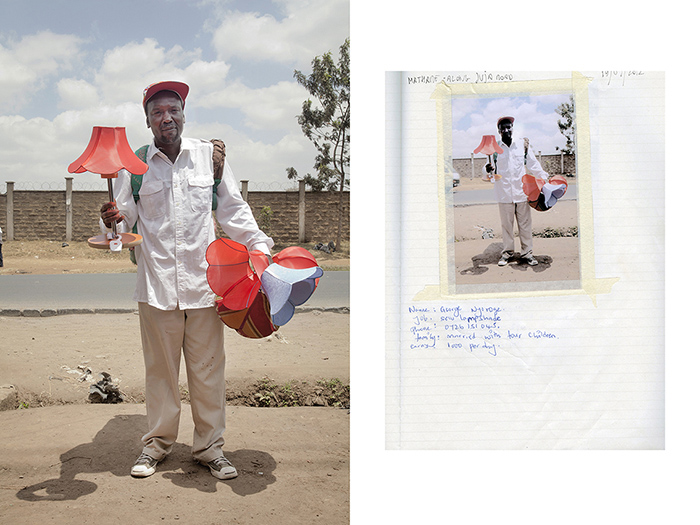 Selling on the street, going from door to door, is one of the most common trades in the African world, in both the rural areas and the slums of the big cities. The seller who goes around with the goods on his back is, in that situation, characteristic of those who are accustomed to fending for themselves and coming up with their own job. It is the crude spin-off of a changing, evolving economic process. The slums are not only places of extreme survival: a more careful look at them reveals that they are hubs of self-generated, continuously expanding economies. The seller and his wares are an “indicator†of the consumption, the needs and even the whims of a community. The title of the series of portraits of the street vendors – “Nomadic Sellers†– is stolen from how a seller described himself: “I sell nomadic.†From their testimonies, we learn that those who sell pesticides earn more from a day’s work – 1,000/2,000 shellini (10, 20 euros). Those who mend broken plastic tubs, using burning embers in a primitive hot-melding technique, earn only a tenth of that. The Masai sell traditional medicines, often herbal brews transported in white bins, for 10/20 shellini (0.20 euro) per glass. This is a small nation of artisans who display goods produced in the slums, and sellers of goods (such as women’s shoes) made from donations by charity foundations. 89 The handmade shoes are created from pieces of rubber tyre. In other cases, you can find Chinese products, such as lace lampshades, being sold at knockdown prices. But there are also many who sell SIM cards for mobile phones, given that the phone industry in Africa is perhaps one of the biggest expanding markets, and someone has understood the potential of a widespread sales network in a ghetto of more than half a million people. Those who sell on the streets of Mathare, and across Africa in general, testify to the strength of collective desires that are not always as primitive as might be expected, instead revealing a consumerist need not unlike that in the rest of the world. © Filippo Romano