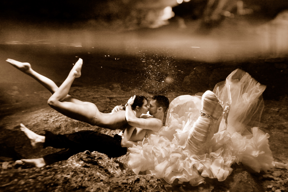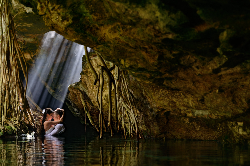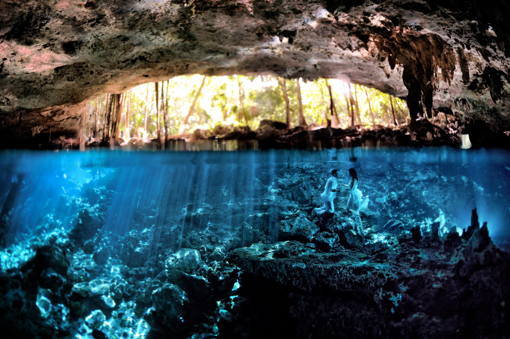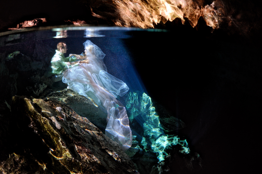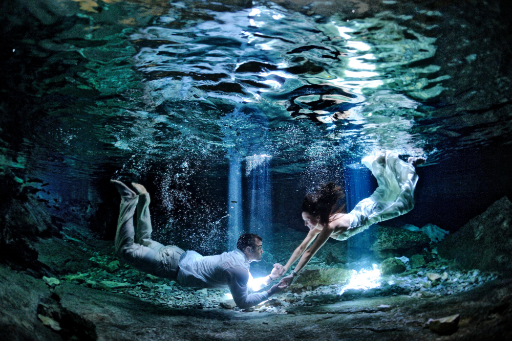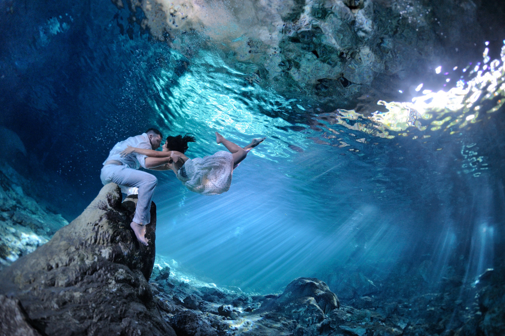 Bride & Groom Underwater Trash the dress in Cenotes - Mexico