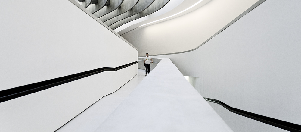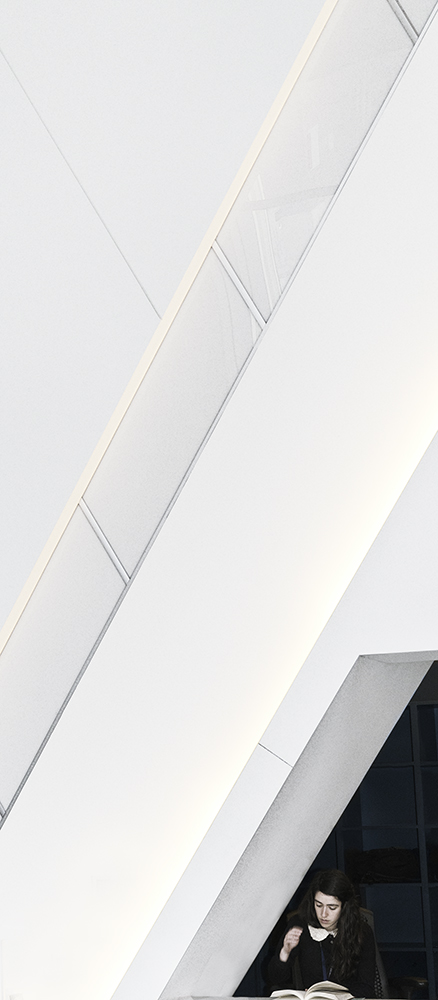 AS AN ARCHITECTURAL PHOTOGRAPHER MY FOCUS IS ON THE RELATIONSHIP BETWEEN PEOPLE AND ARCHITECTURE. LINES, GRAPHIC ELEMENTS, REFLECTIVE MATERIALS, AND DYNAMIC FORMS OF MODERN ARCHITECTURE PRODUCE INTRIGUING COMPOSITIONS IN MY IMAGES AND EMPHASIZE THE ABSTRACT QUALITIES OF THE LOCATIONS TO ENGAGE IN A FURTHER EVALUATION OF HOW PEOPLE PERCEIVE AND INTERACT SPONTANEOUSLY WITH THE SURROUNDING URBAN ENVIRONMENTS OF OUR TIME. THE INDIVIDUALS IN MY IMAGES BECOME PART OF THE GEOMETRICAL COMPOSITION AND CONVEY THE SENSE OF SPACE, AND SCALE, WHILE BREAKING THE LINEAR QUALITY OF THE HIGHLY DESIGNED COMPOSITION. I AIM TO CONVEY TO THE AUDIENCE THE SENSE OF TAKING PART IN THE SCENE AND FEELING SURROUNDED BY THE SPACE, AND THE POETRY IN THE ARCHITECTURE.