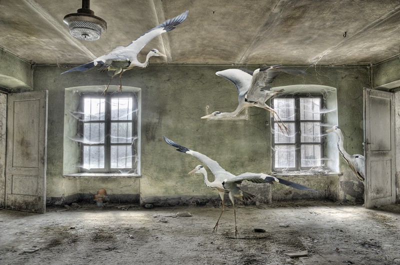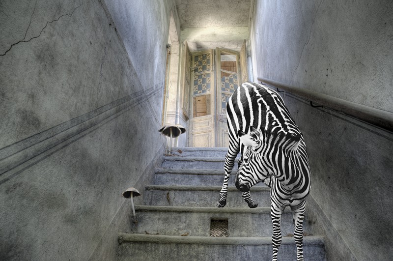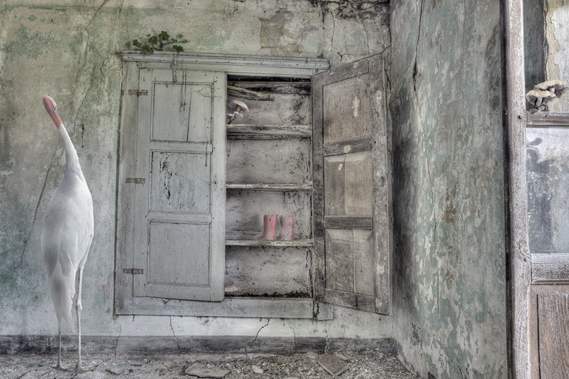 After long walks in the Langhe countryside looking for abandoned places, I wanted to tell the emotions experienced for myself by entering into this lonely rooms, full of charm. I made it through animals, to paint the situations of a dream, suspended in time. The works are the transfiguration of the places through the emotions, combined with what I would expect to see.