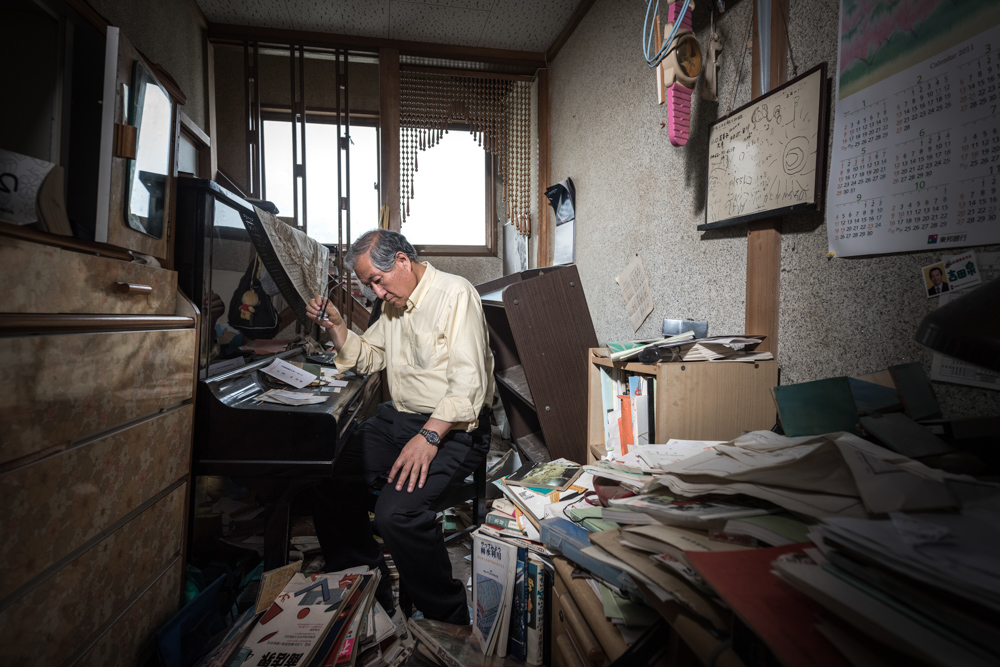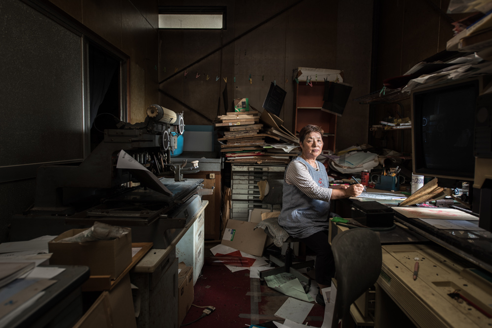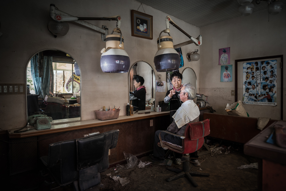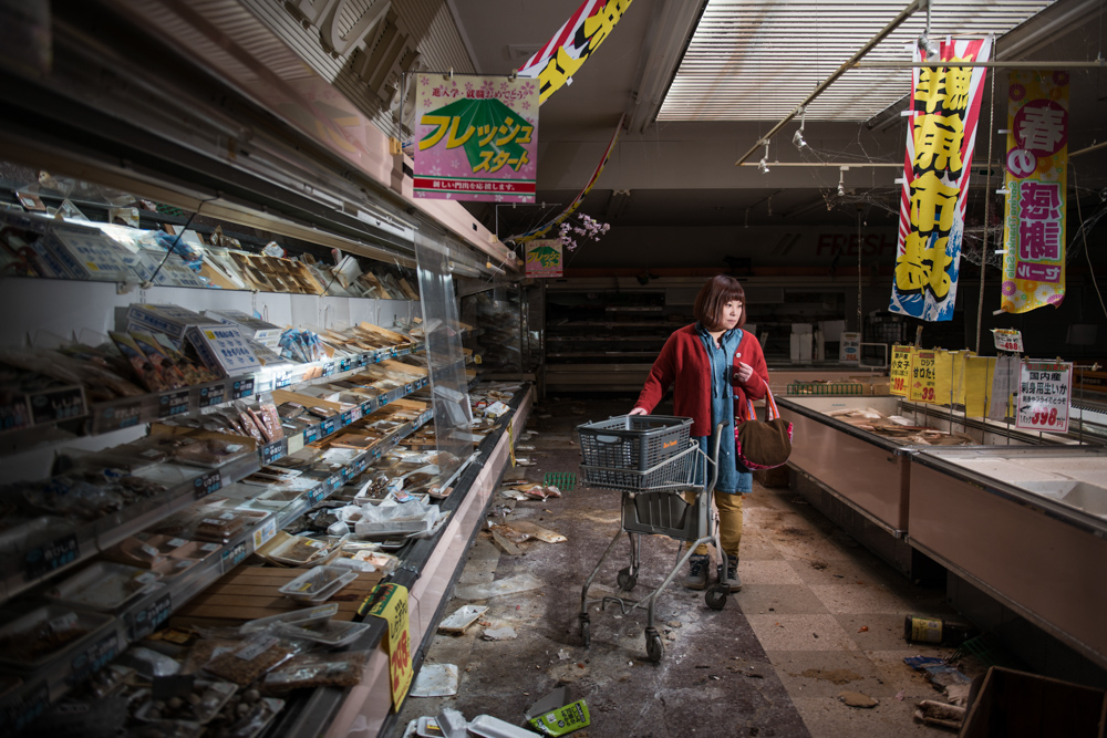 Almost all of the 110,000 nuclear refugees forced to evacuate areas near the Fukushima Daiichi plant have at times felt compelled to return to their homes, schools and businesses. When they did, they struggled to recognize places that had once been so familiar to them. Damage from earthquake and tsunami of March 2011, years of absence and the arrival of rodents have rendered the buildings practically unrecognizable. We asked former residents or inhabitant from the Fukushima region, and in some cases, the actual owners of certain properties, to join us inside the no-go zone and open the doors to these ordinary, but now unfriendly, places. Facing the camera, they were asked to act as normally as possible – as if nothing had happened. The idea behind these almost surreal photographs was to combine the banal and the unusual. The fact of the historical nuclear accident gives these images a real plausibility.