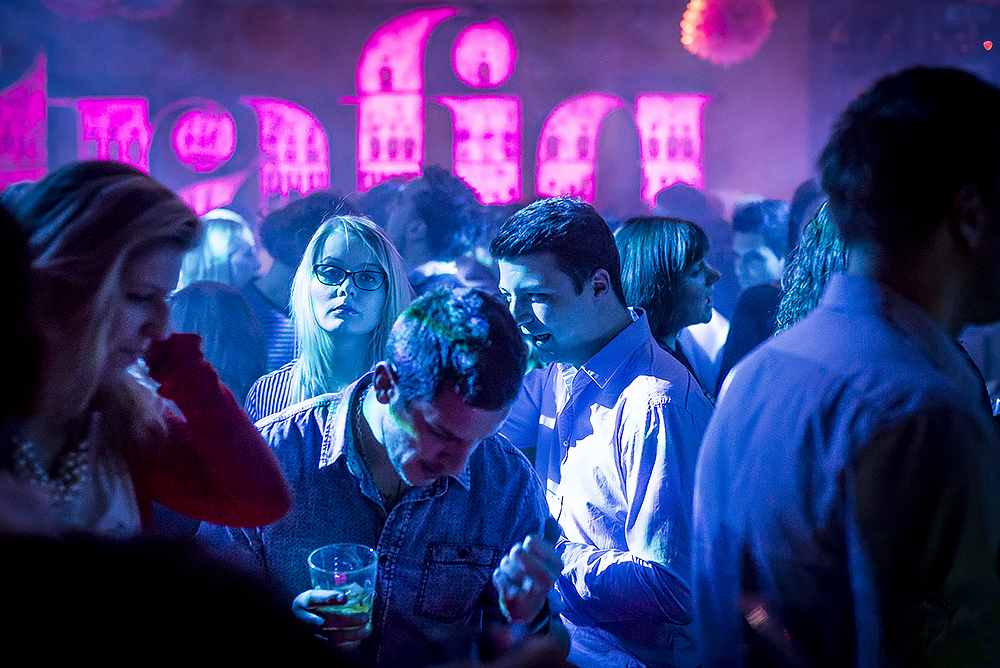 Short series of people who seem to be completely zoned out in an otherwise crowded club.