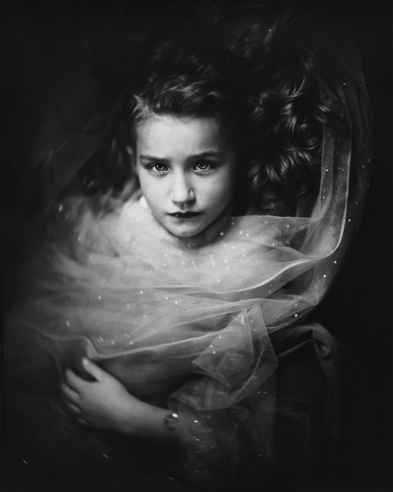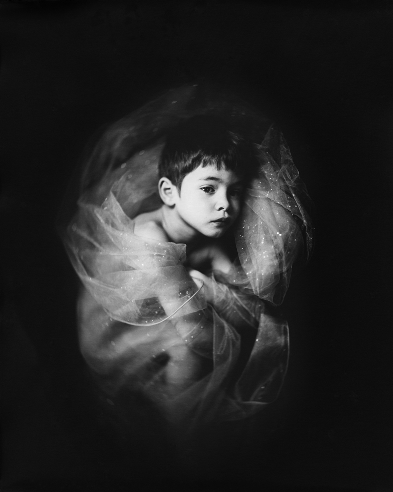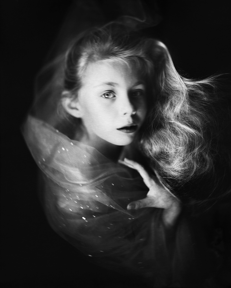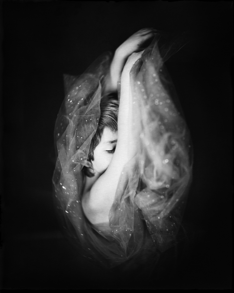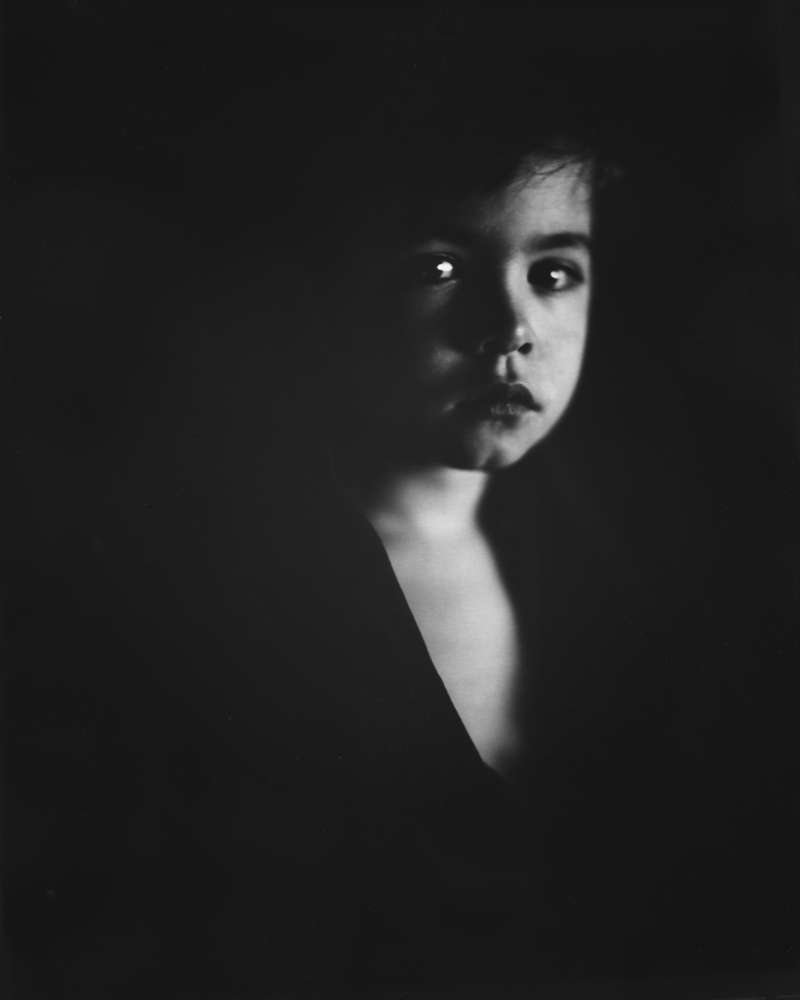 "Mystic": from the Greek 'mystikós', an initiate into the mysteries transcending ordinary human knowledge, as by immediate intuition. For the series "Mystics" I used direct positive paper, which gave me the strong contrast and the rich dense blacks that I was looking for for this series of portraits. I wanted the portraits to be dark and bright at the same time. Out of time. In limbo.