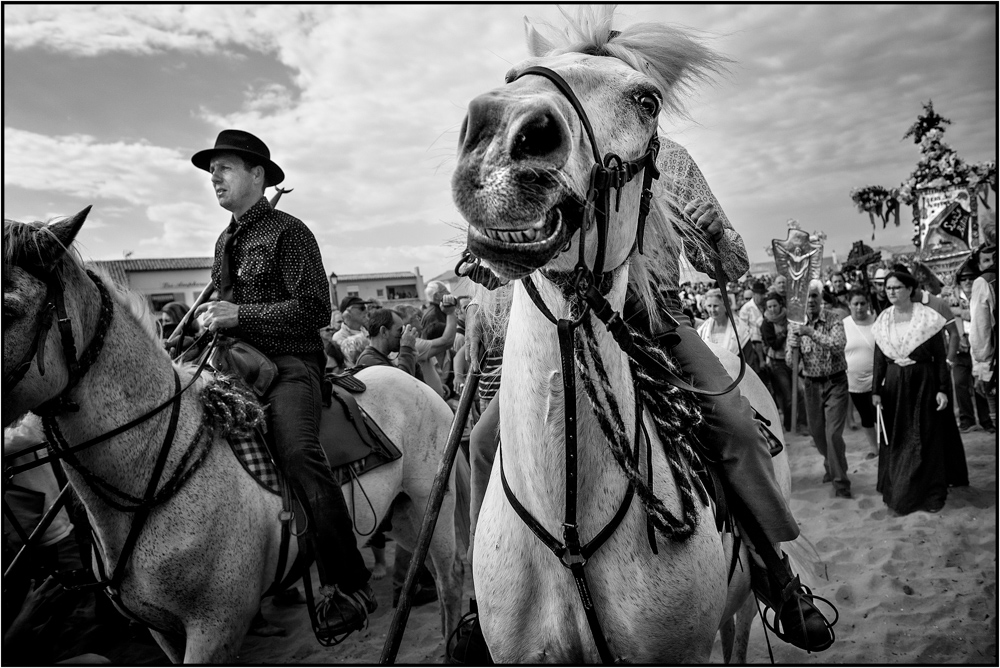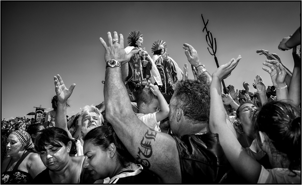 The Gypsies, coming from all countries of the world, meet in Saintes-Maries-de-la-Mer(Camargue France)every year on 24th of May to invoke Saint Sara and Saints Marie to get their protection. The procession,moving from the church, ends in to the sea water. Here the Gypsies, with songs and prayers, implore the Saints to wash off their sins