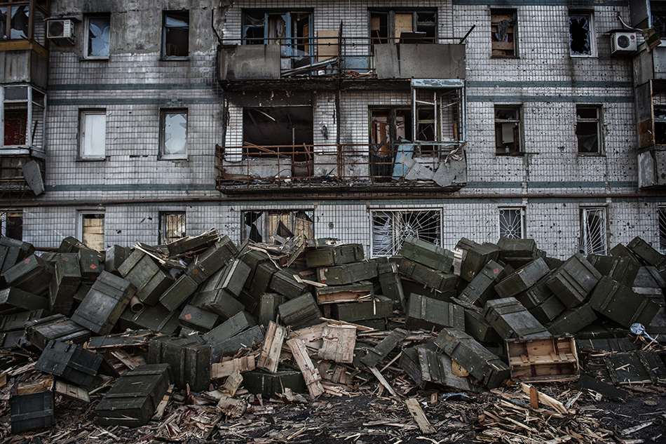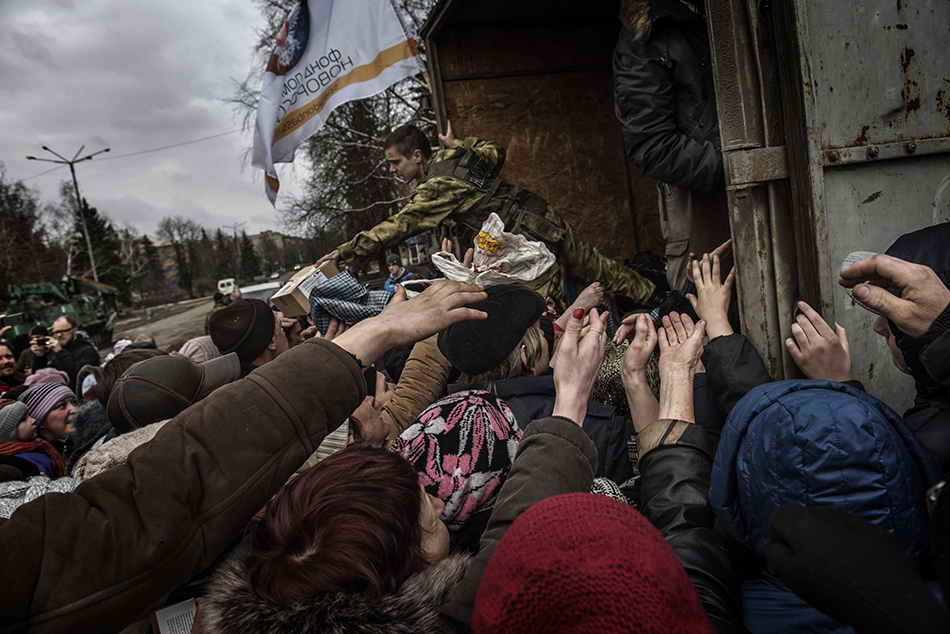 After the Maidan rebellion a year ago, Ukraine is at the moment split in two parts. On one side, there is the Kiev Government and on the other the pro-Russia separatists. The main victim of this major conflict are the civilians: the thousands of people that had to witness the unfolding of the Ukrainian crisis without bearing any real responsibility. Even if many common people did participate willingly in the spontaneous protest against the widespread corruption in the country, they are nowadays victims of this war due to unpredictable events and circumstances. Some of this people have run away to avoid the mounting violence of the war, others have decided to stay because they didn’t have any other alternatives. Others still have joined the army or the militias. Everything seemed to have crumbled: from the personal relationships amongst individual to their belongings, and with them the economy of an entire nation. Everything is fragile in Ukraine at the moment. The present has been crushed by the war and the future doesn’t exist because of the war. What people have in front of them is fragile; what they expect from the future is fragile; the truce that came out from the Minsk agreement is fragile. There is no shred of normality left. Ukraine is a modern country that has become a war zone. The conflict amongst like peoples has transformed peaceful neighborhoods into refugee camps made out of rubble. Nowadays it is common to see hundreds of arms raised, desperately grabbing at food that is thrown from the humanitarian trucks. Packs of stray dogs roaming deserted streets is not an unusual sight. Ukraine is a huge tragedy and it sounds a big alarm bell for everyone who wants to believe that peace, wealth and brotherhood can last forever. Fragile is the path that takes people there .