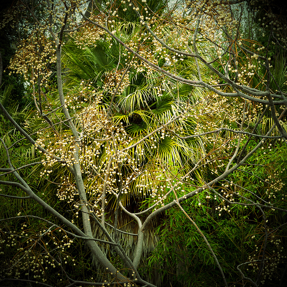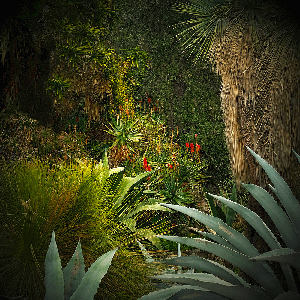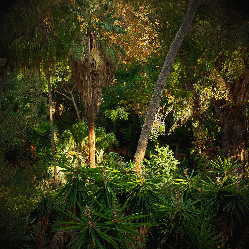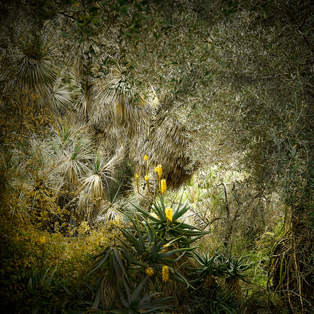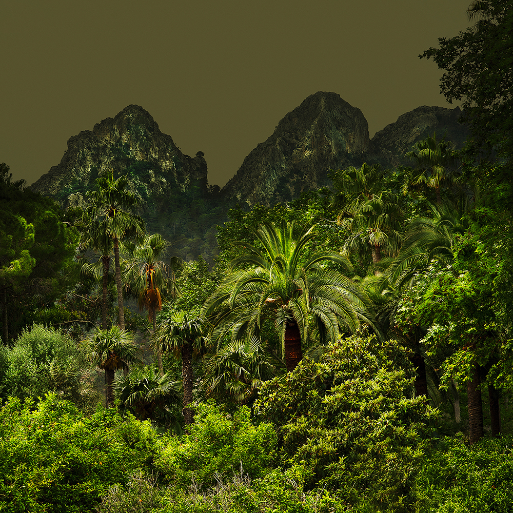 With the "Jungles" series, Olivia Lavergne imagines territory and makes it her own. Her way of seeing things transforms landscape which becomes a photographic painting. The choice of the light technique called the chiaroscuro, the vegetal forms and colors -Â ochre, green, blue -Â which are standardized in the painting of landscapes, strengthen the unusual aspect of the scenes. This series is about the exploration of a territory and its metamorphosis. Olivia Lavergne is interested in mysterious vegetation, opulent forest, and uses the jungle as a starting point.