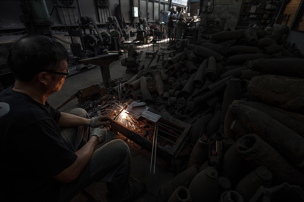 More than fifty years ago, there was a war between Taiwan and China. Kin-men, where is a small island fired by heavy artillery of China. The artisan used shell cases to make kitchen tools, like a good quality knife.
