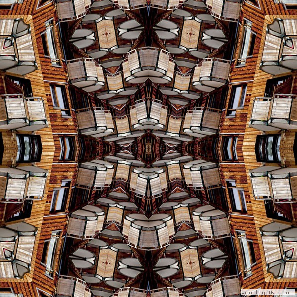 Avoriaz is one of the most original european alpine ski resort. Perched high on a rocky promontory it looks down over the cliff edge near Morzine in the region of the Haute-Savoie in France, Avoriaz is instantly recognizable for its dynamic architecture, based on the concept that in nature there are no right-angles. The buildings are mainly fabricated from wood and slate and blend well into the colours of the cliffs. Many of the designers that have contributed to the development of this place have won prestigious awards. In my images the improbable buildings of Avoriaz, have been dismantled and reassembled in surreal visions, abstract architectures. Repeated shapes and lines that create a fictional universe in which to lose, immersed in a kaleidoscope able to return a new fantasy world.