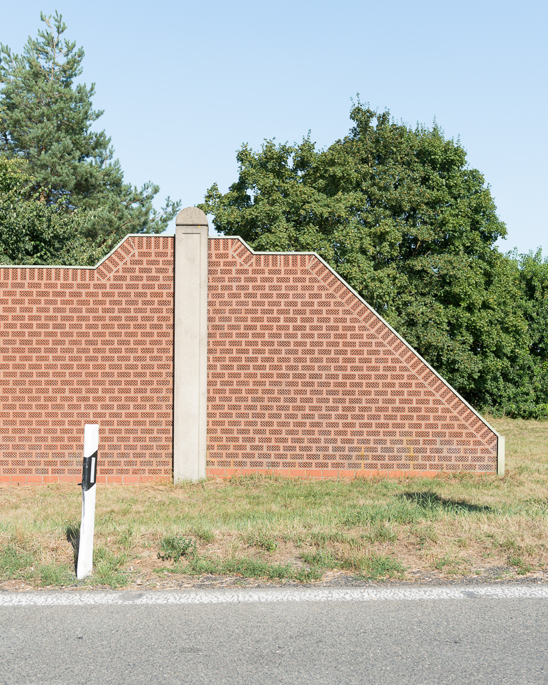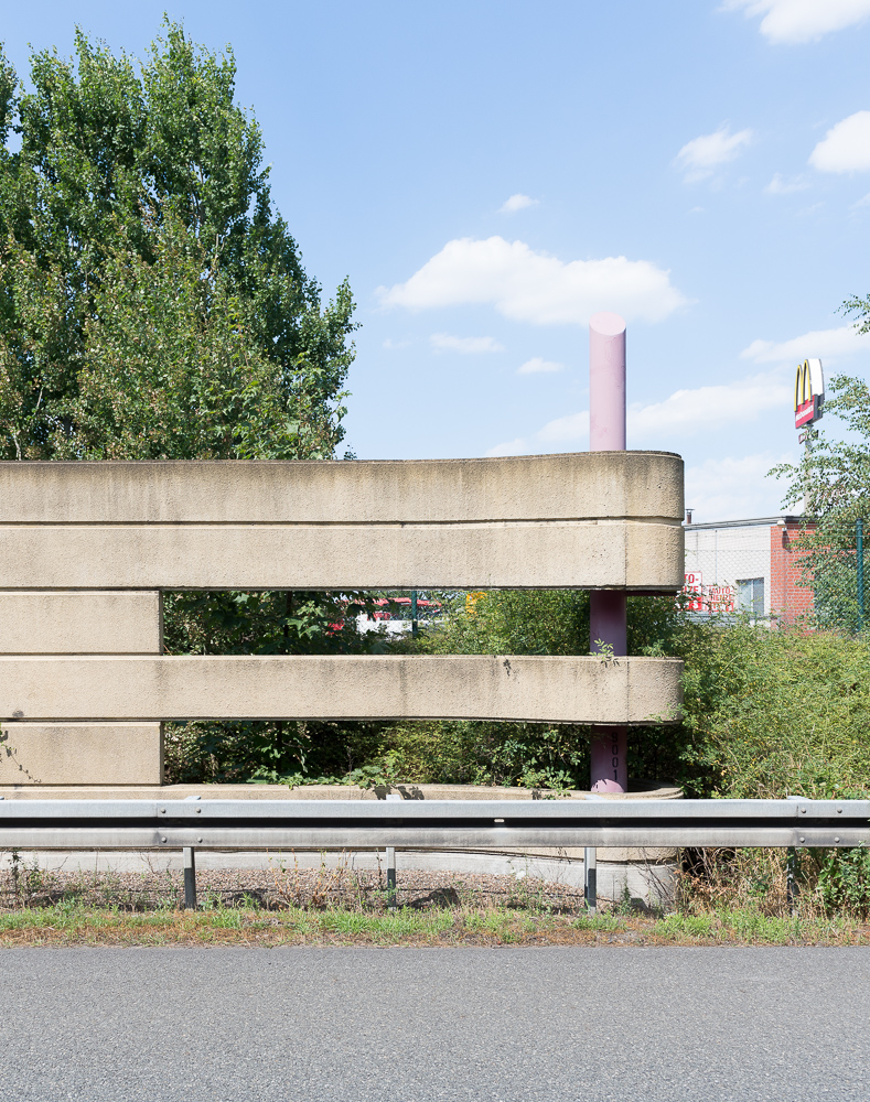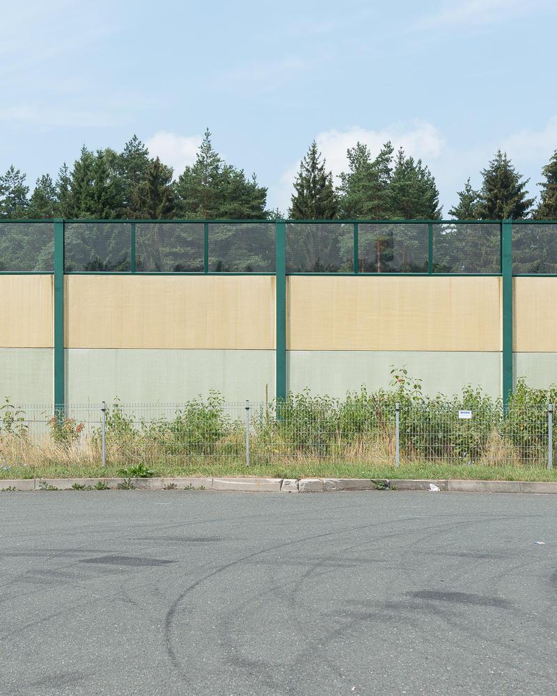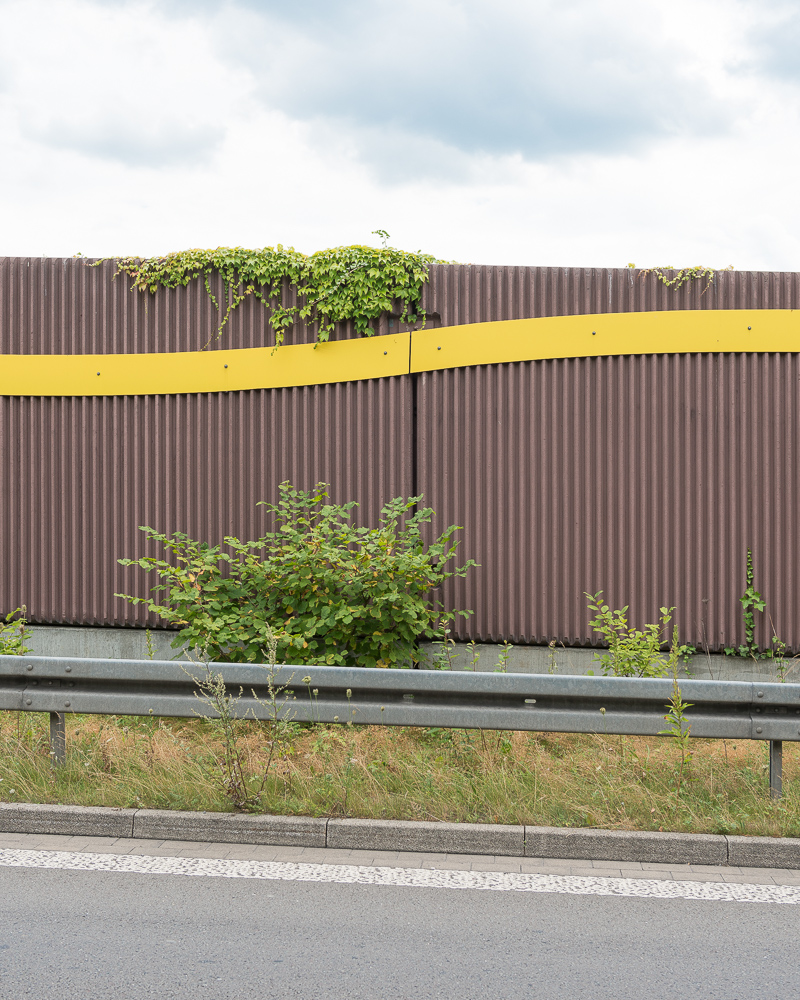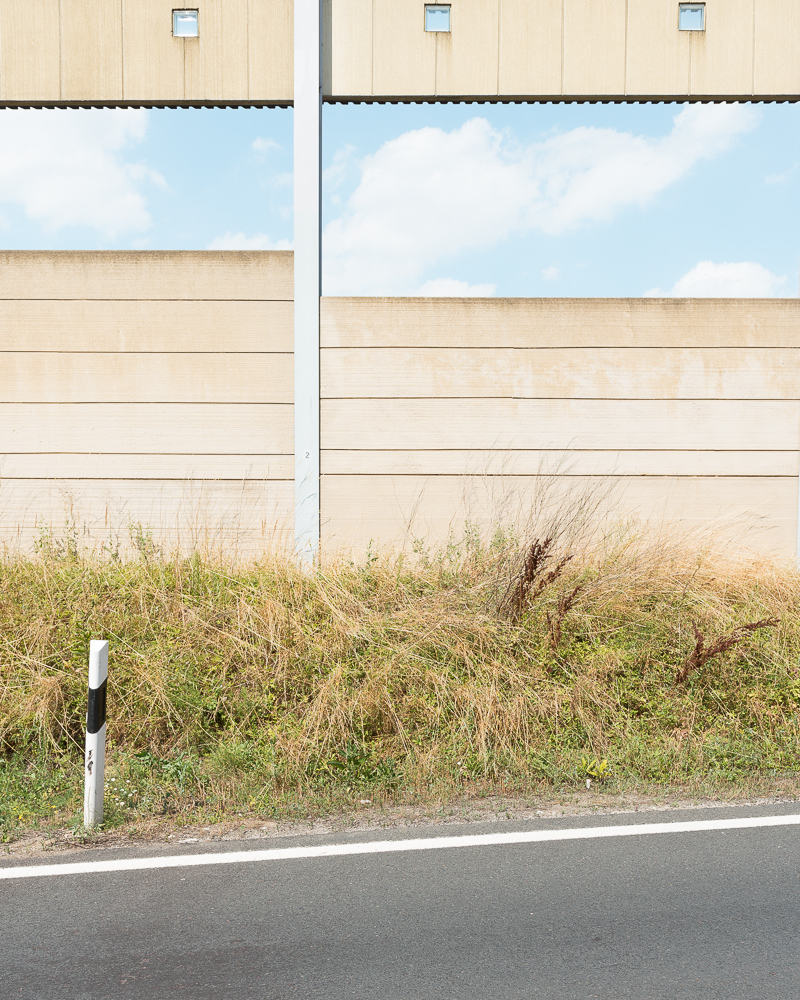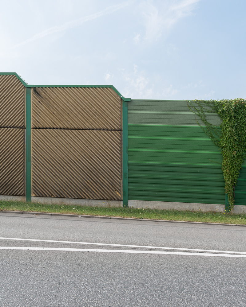 The series shows noise barriers along German motorways. Germany is still the only country in the world where no speed limit exists on the "Autobahn". Barriers are being built almost everywhere to protect people, who are living near. These buildings exist in strange forms of architecture. Each community is allowed to create it's own design, because there are no overall guidelines about how these walls have to look like. The pictures were taken all over Germany. This is what you can see, when you cross the whole country by car and have a look out of the side windows every so often.