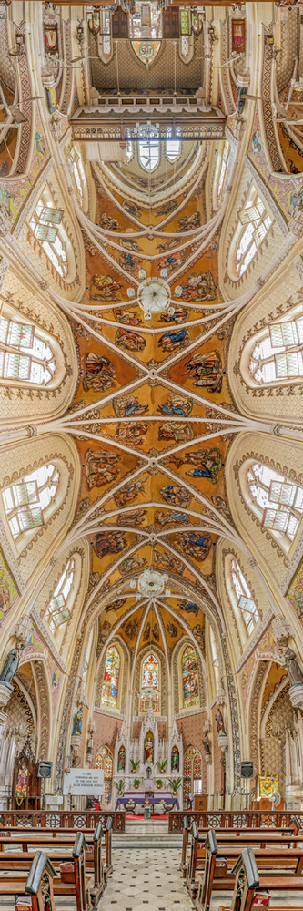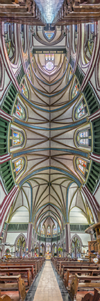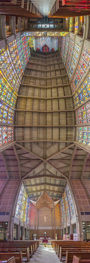 Having been to hundreds of churches in my many years of travel I have only recently figured out this unique style of photographing and capturing the inner beauty of their interiors. Finding the perfect location in the center aisle then shooting vertically from the pew to the back of the church gives the perspective that only architecture of this form can portray. Each photograph consists of 5-9 shots merged together as a vertical panorama.