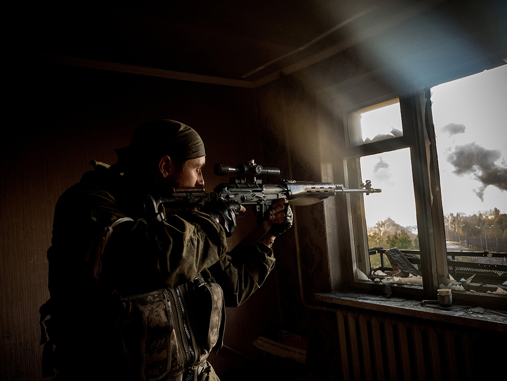 The project was done in two phases. The first in the Autumn of 2014, when separatist forces took control of Donetsk's airport. The second in the Winter of 2015, following the current ceasefire subsequent to the occupation of Debaltsavo, an important strategic point for the territory. The aim of the reportage is to illustrate the situation as it appears in the occupied territory beyond the last Ukrainian controlled checkpoint: volunteer separatists who actively defend a devastated wasted land in which a fragile ceasefire is not upheld. A year after the beginning of this conflict, first considered as a crisis and later as an uprising, it now appears as the first European Civil War of the the century.