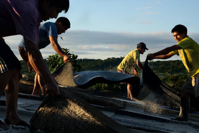 Peruvians call themselves “the mining country.†Gold mining is the foundation of life in the Madre de Dios river valley. To extract the gold, quicksilver is used for binding the gold particles together. This mercury-gold ball is heated and the quicksilver evaporates, leaving pure gold. Up to 20 tons of gold are produced in Madre de Dios annually by 60,000 miners scattered around more than 85,000 square kilometers. No miners can legalize their activities in Madre de Dios because of contradictory laws. Fifteen percent of the gold mining in Peru is illegal, generating twice as much profit as drug-dealing.