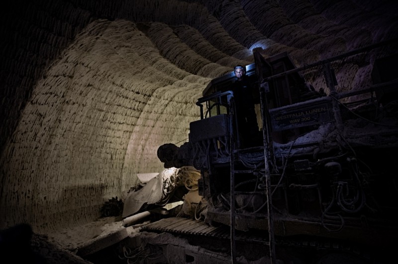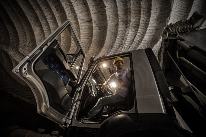 The mine Racalmuto in Sicily, it’s one more rich deposits of salt in Europe: a huge lens of rock salt contained in the heart of a mountain. Here it continues to resist the mining culture of Sicily through which a territory marked by a very high unemployment rate are still working and support dozens of families of miners. Going down in the mine, leaving behind the light, to enter into the bowels of the earth, where the work of man has created miles of tunnels, which penetrate the mountain for hundreds of meters below the surface. The feeling of claustrophobia immediately turns in astonishment. Galleries are not the narrow passages I expected, but large, enchanting and engaging, with streaks and textures worthy of a baroque cathedral. The mine is like a womb, it is the 'beginning', it’s here that there was the sea millions of years ago, when there was still no trace of man. Entering and descending through the network of tunnels is a step back in time. In the mine, time stops, losing track of it, the darkness and the shadows are the guardians of this kingdom which contrast with the white reflections of salt only illuminated by the machines that dig up to 7 meters of tunnel per day. The light. It's a lunar landscape, where the lights of machinery, completely covered by a white powder, seem eyes of unknown creatures. Thanks to the work of the miners, over 500 tons of salt each day, left in the hands of oblivion, come to the sunlight. The trucks go up from the depths of the earth doing constantly back and forth to bring the salt crystals to the refinery. Here the light is blinding, made of flares, a blanket of white "snow" wraps everything. Daily dozens of workers select and package it to create that product that is so familiar to all, but which in just a few can imagine the origin. It is thanks to the courage, passion and professionalism of these men that at every moment the rebirth of a particle of the universe is accomplished.