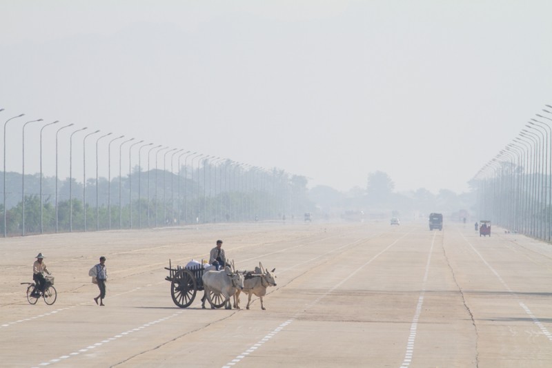 Junta in Wonderland In 2005, the Burmese junta started to build NayPyiTaw, her new capital city, in the middle of the country in the bush. Officials were forced to move from Rangoon. The huge city became actually the new army residence. Military parades and summits are organised in NayPyiTaw for the Ministers and the Head of State. The city is accessible since 2011. Soldiers are controlling an empty city which include several very distant aeras. 20 lane-highways with no road signs (!) and lotus fountain roundabouts punctuate this inhuman space. Though environnment is dry and water/electricity ressources are lacking in the country, NayPyiTaw get 24h/24h connection. Moreover, cleaners employees are everywhere to polish the « Wonderland ». Aung San Suu Kyi is talking about the city saying it’s a « Disneyland fascist ». New elections will come in November 2015.