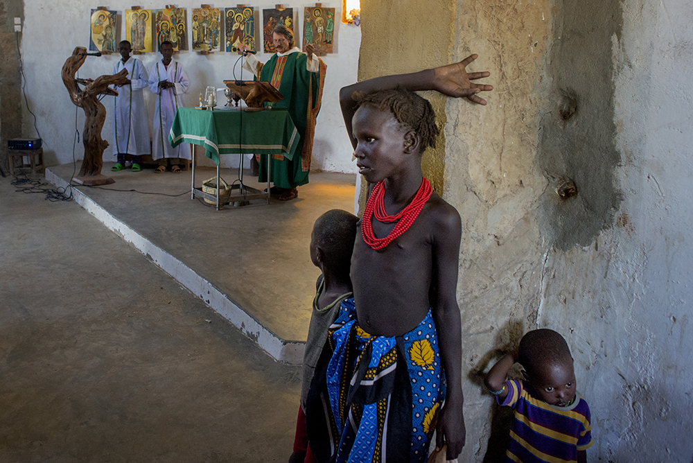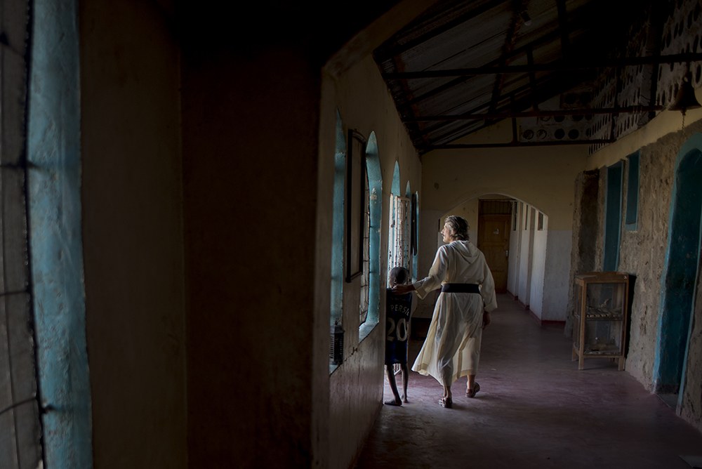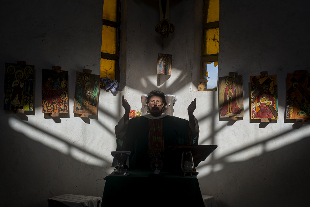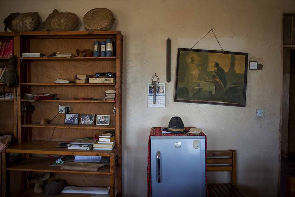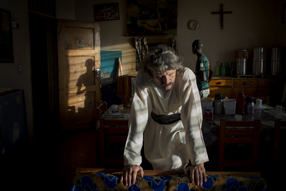 Father Florian walks down the hallway St. Peter the Fisherman parish in Illeret, Kenya. Florian is a Bavarian prince and gave up his royal inheritance to become a Benedictine monk. For the last 10 years has been working in a remote area on the border of Kenya and Ethiopia with the Daasanach tribe. He believes in the motto “Ora et Labora†meaning “Work and Prayer†which is what he tries to impart on the local community through example.