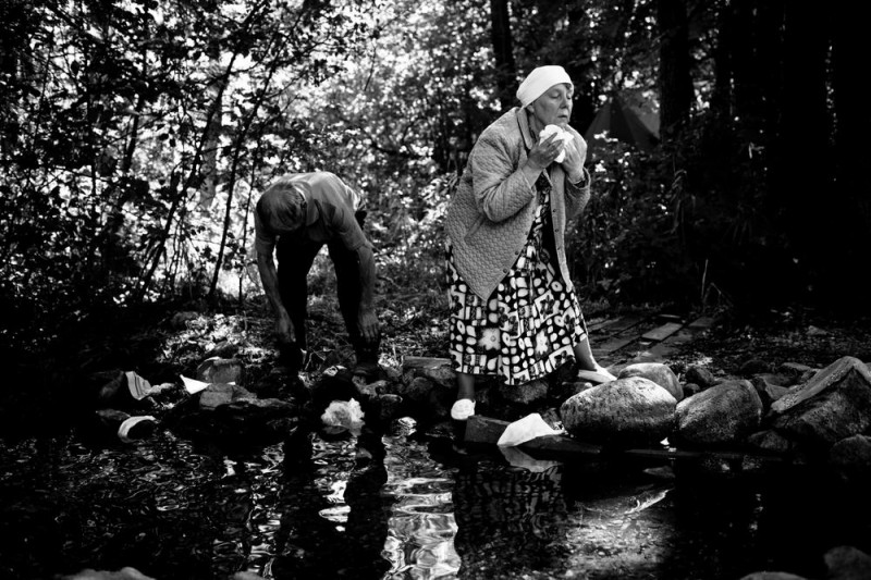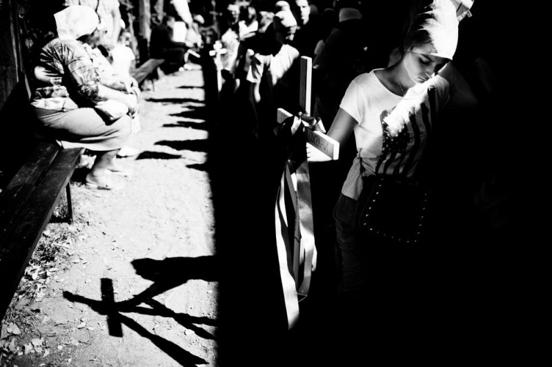 2015-08-27 Every year at Holy Hill Grabarka come hundreds of Orthodox pilgrims carry crosses in different intentions . They wash their bodies in consecrated water with miraculous healing properties