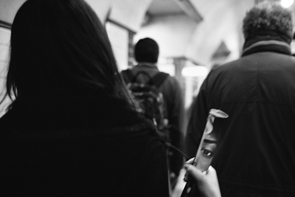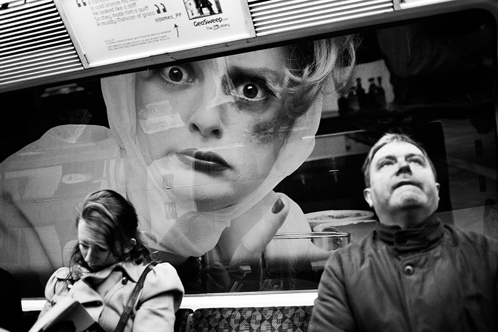 “Everyhere I look, I’m being looked at†series is centered on “consumptionism,†an idea that wanting and spending controls us. Wedged into the routine of daily life, my subjects often involve advertisements – specifically, those that have the power to isolate.