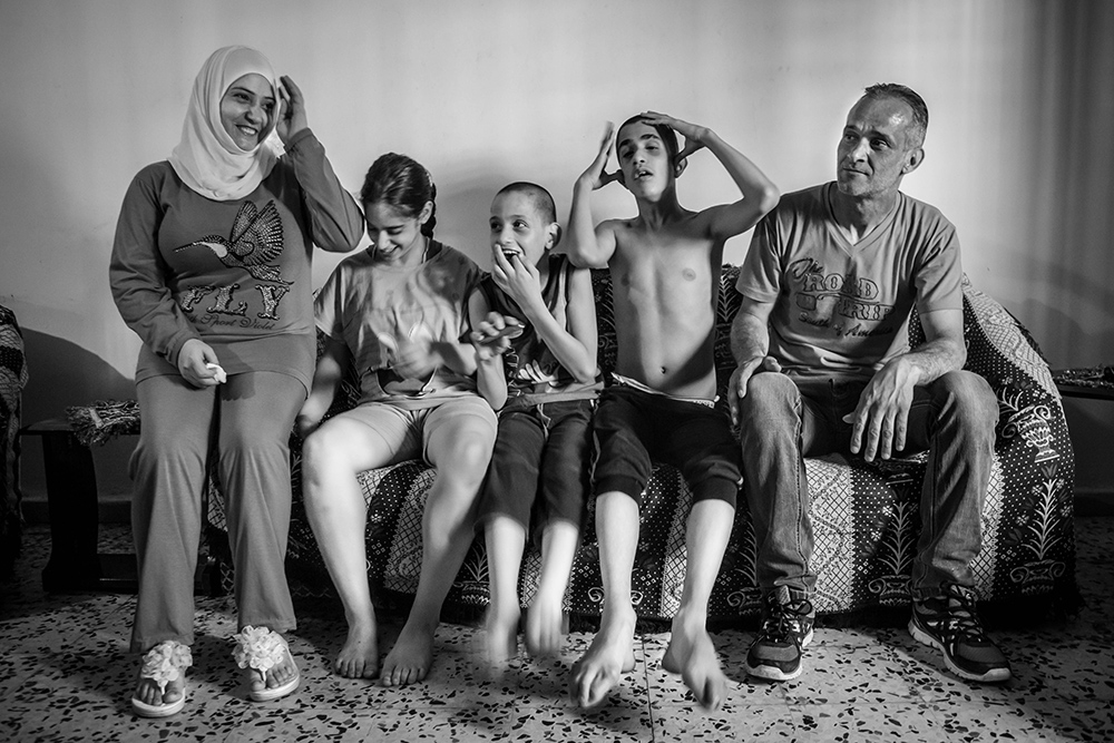 Burj El Barajneh Refugee camp exists in Beirut Lebanon since 1948. Hosting Palestinian refugees since the Arab-Israeli war. People have lived, have died, got married, and had children, within the camp, making it their temporary new home. This refugee couple, met in the camp, got married and gave birth to 3 amazing children. The 3 of them are autistic. Making it even harder as a refugee to get medical treatment. This couple lives their day-to-day lives smiling; thanking God for the 3 blessings he gave them.