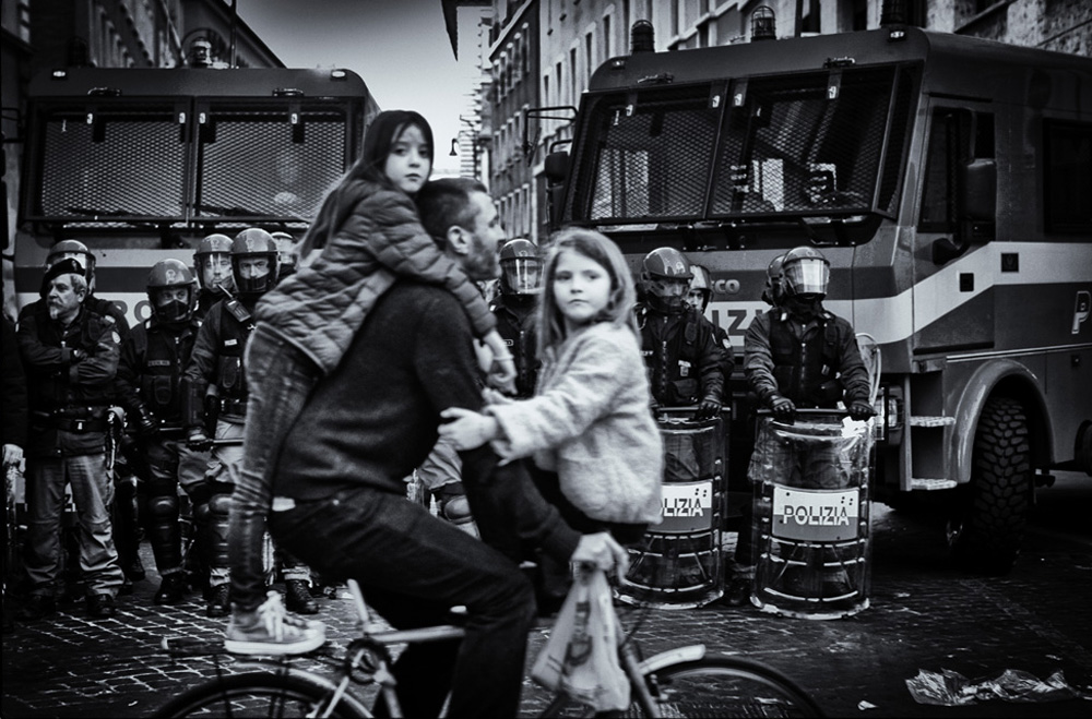 Salvini, leader of italian "North League" , comes in Rome to meet leader of "Casa Pound", a neo-fascist party. Police close all the area, but people try to demonstrate against him
