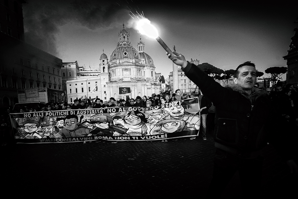 NO SALVINI, Roma in tilt con migliaia di uomini delle forze dell'ordine e strade sbarrate ad ogni vicolo, controlli su vari punti strategici nei caselli autostradali nelle stazioni delle ferrovie, le metropolitane e le piazze di ritrovo. la sinistra che scende in corteo gridando no Salvini e la destra che manifesta in piazza del popolo Renzi a casa.
