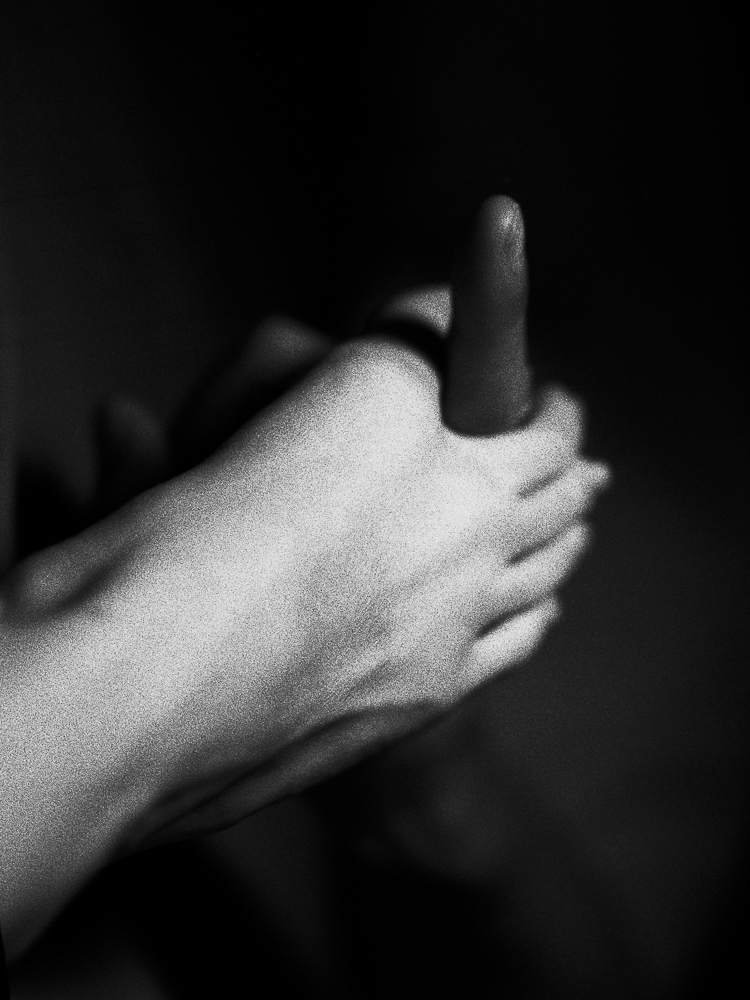 No matter how many years I spend with my partner, there is a certain boundary between us. The boundary is not only a metaphor in a spiritual connection, which is the more physical meaning to me. I sometimes experience a moment of dissolving the boundary, and yet I cannot be a part of him. Our bodies, which fail to be one remain two individual beings. The moment of unity never lasts long. A sense of togetherness is all an illusion. “Untogetherâ€, depicts my desire and passion to our bodies. I sometimes experience our souls become one. However, it’s impossible for us to exist as a single object. The obvious truth that human beings never are able to be together physically even if we can be together mentally, makes me frustrated, since I’ve always wanted to be one with his body. I explored our physical interaction by visualizing a mental relationship that I’ve been holding. It is also one of the ways to experiment our relationship. I used film with ISO 3200 on this particular project to gain a lot of grains and lose detail, since I did not want to have crispy detailed certain boundary between our bodies. I wanted to dissolve our boundary as much as possible. As the project going on, I realized “Untogether†turned out “together†as a piece of work.