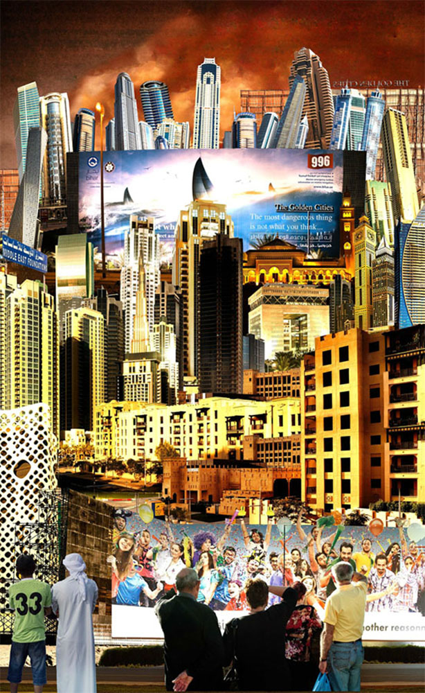 "Babel" is a series of pictures fusing fact and fiction, pushing viewers to investigate on the meaning of such composition and symbols. Inspired by artists such as Giorgio De Chirico, S. Dali’ and by photographers such as D. La Chappelle and Steve McCurry, "Babel" is a combination of photo reportage and surrealisme with the result of images that float between reality and imagination. Using the technique of digital composition, "Babel" portraits cities that don’t exist in the real world but display the extent of how far our mind strives to build and/or destroy.