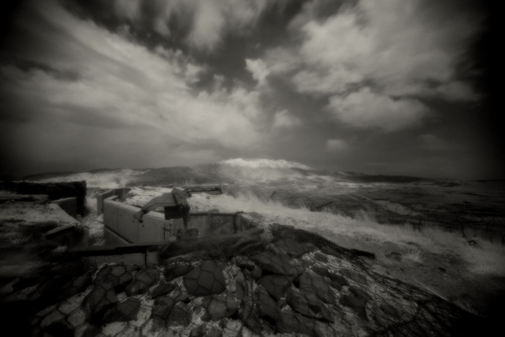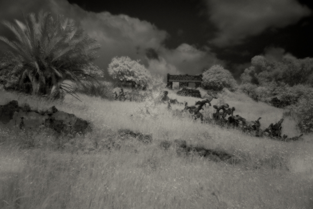 “For My Father†shares the ephemeral nature, and difficulty of attempting to reclaim a past in an environment that is rapidly changing, and becoming unrecognizable. It was photographed on the spectrum wavelengths of an Infrared lens, beyond what our eyes can see. While I cannot replicate the memories of my childhood visits to these hills, seashores, towns and villages–now all contested landscapes claimed by others, these photographs do capture my alienation. They describe the loss of historical memory that occurs when political conflict creates social ruptures, and remind me that I’m a stranger in my father’s land.
