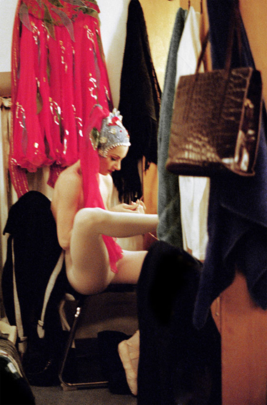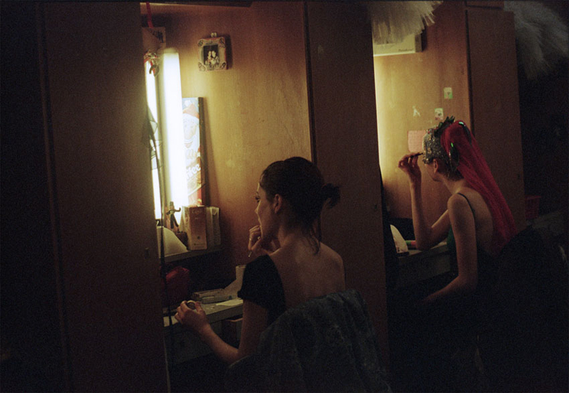 Describing places or situations through its facts, it can become a web that branches off into the tiniest twigs and all directions. Like in a thread, associations are interwoven with each other and become partially absurd. Describing something with pictures means to collect fragments, lift them from their context and reassemble them. I am interested not in the immediately concrete, but in that which can be detached from the given. Places where contradictions come together. Pictures that explode the surface. The beauty of ballerinas makes a lot of girls dreaming of their life, a world full of mystery and fascination. But the actual lived stereotype in the self choosen gilded cage in the theater retrieves desillusioning banalities and routines as well as psychic hyperesthesia due to powerfull and deep passions My work „ No shoes to dance with“ is about the twilight zone of the in general romantic stereotype of ballett dancers at the theatre. The photographed protagonists are involved in their particular action, at the moment, where they are in between their real life and their stage life, which makes it easy to read our own stories into the pictures. I was looking for pictures which can be read like a written sentence. These pictures contain real moments which through tiny changes can become a momentary staging. As narratives create pictures, arrangements of pictures can create narratives. From these connected single pictures, a play or a piece of our time can emerge. In my work, I look for pictures which contain a kind of theatrical reality. Not in the form of a drama, but as a staging chanced upon. Reality works as a setting and a stage of the pictures. Maybe such pictures can describe a situation for the time being.
