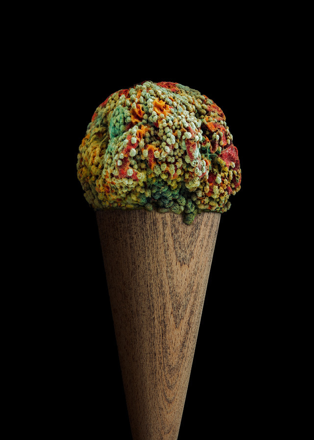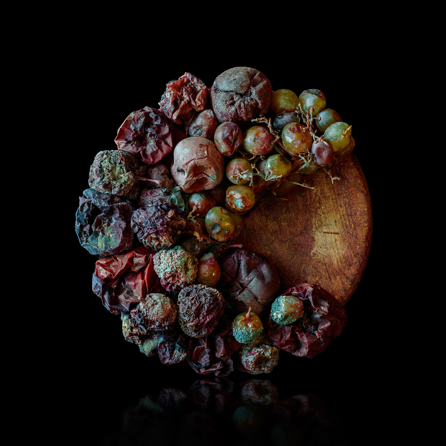 Origin: Trees and reflection, wood and fruit as unique items to use. Materials: The enduring and the ephemeral, the cultural and the natural, seduction and repulsion, beauty and ugliness, the humorous and disturbing. Work: Invest the time and changing the use. Create new connections between material and food. Objective: Stimulate perception (senses) and alter the cognitive process.