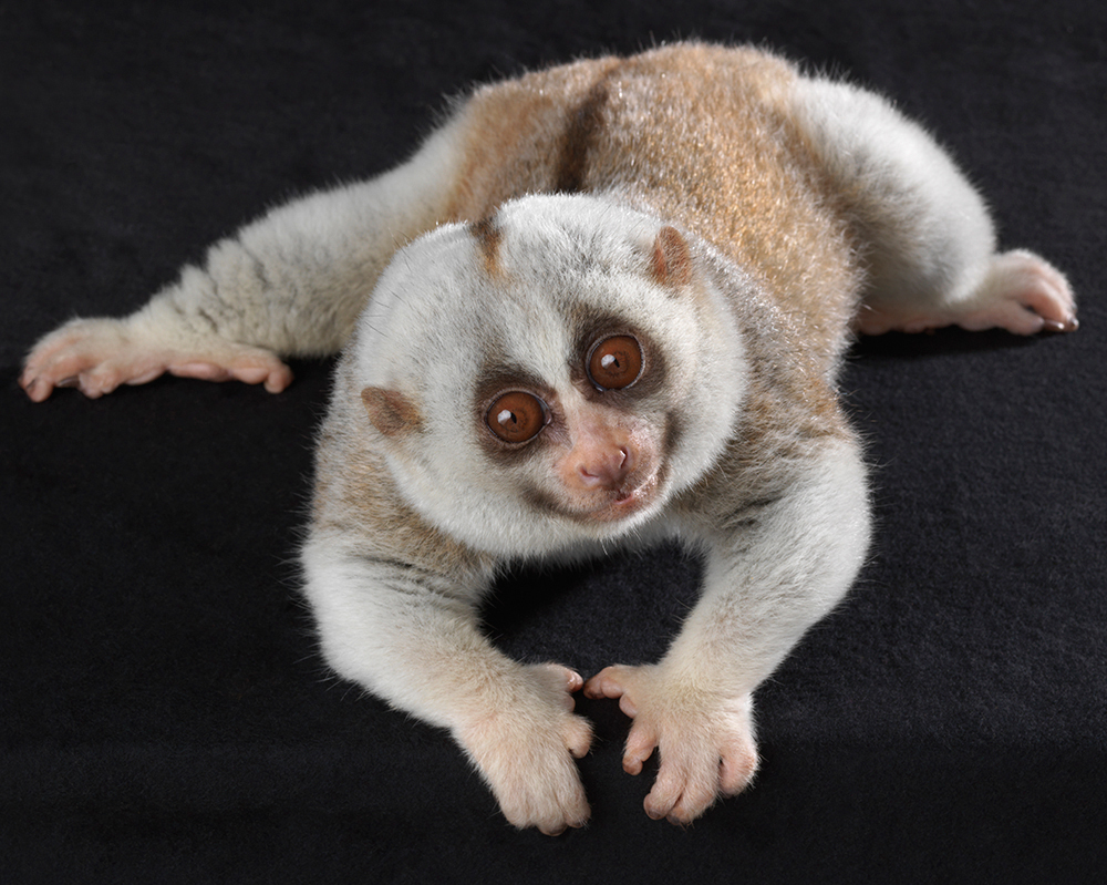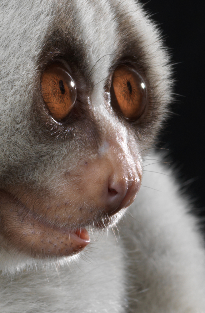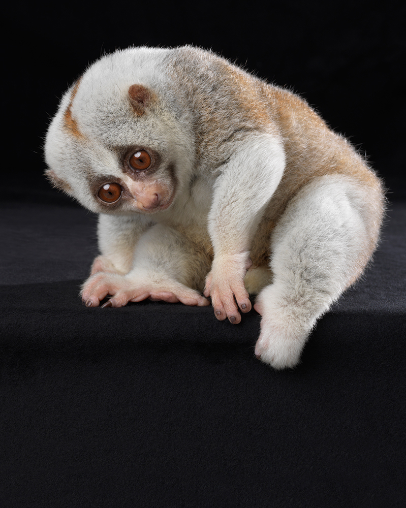 These Slow Loris portraits are part of a larger project focused on primates and the conflict they face in todays world. This loris is a educational animal which travels with it's handler to schools and other educational sites to inform audiences about lorises. The illegal pet trade has affected these cute little creatures at a alarming rate, with teeth being pulled out inhumanly. Many do not survive this first savage act and left to die. The species is a nocturnal strepsirrhini primate, found in Southeast Asia. They have a pincer-like grip and a toxic bite. The toxin is obtained by licking a gland on their arm, mixing with saliva activates the toxin. This little guy has all his teeth and is SLOW, much admired by me.