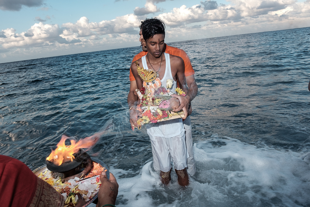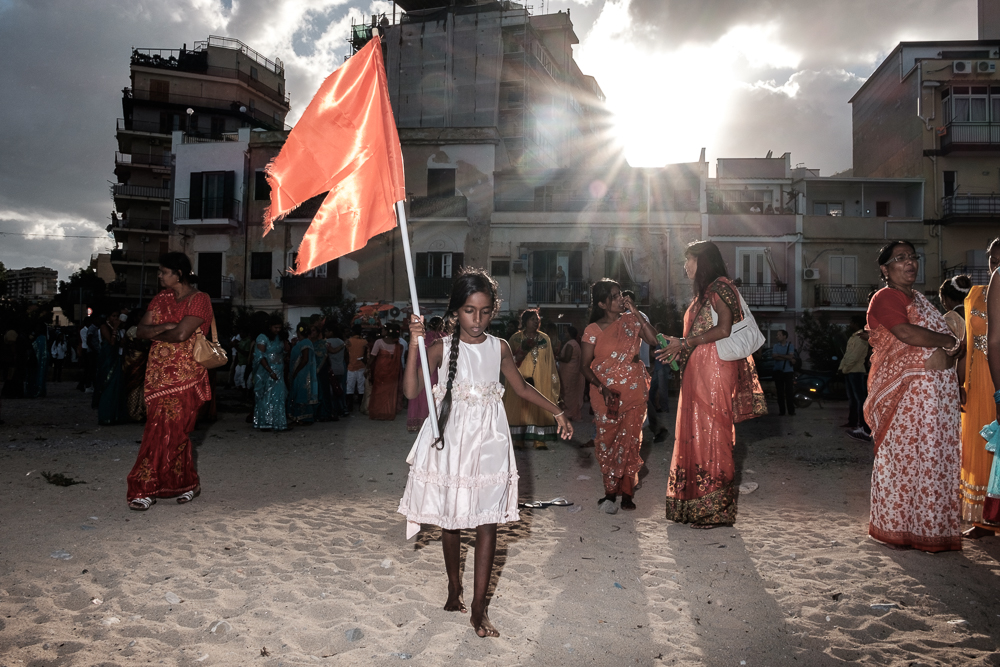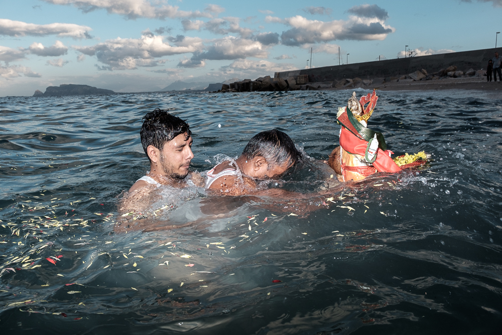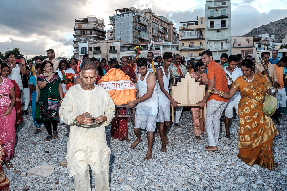 A street reportage during the Ganesh Chaturthi procession in Palermo (18-september 2015).