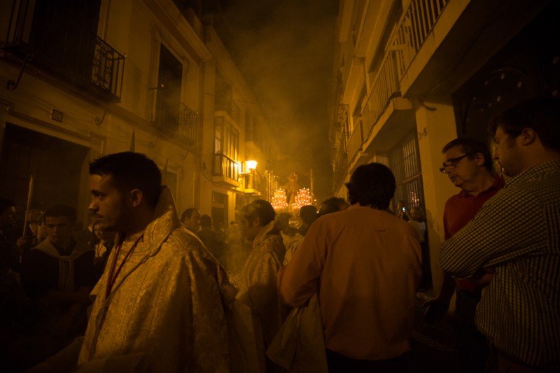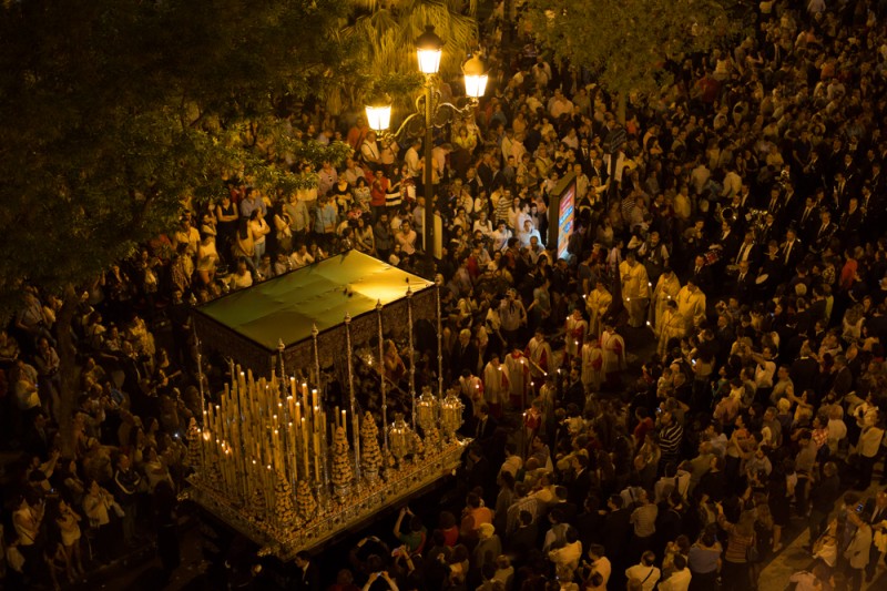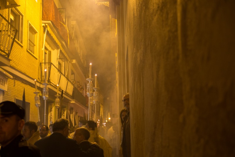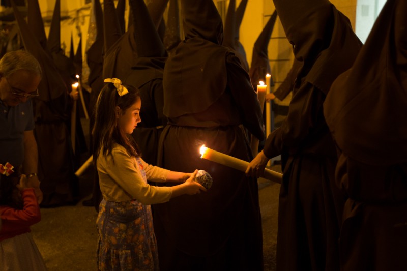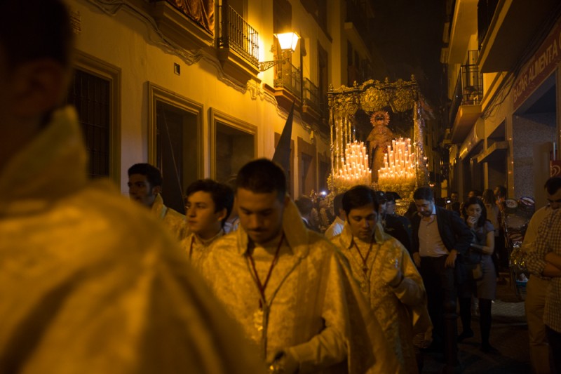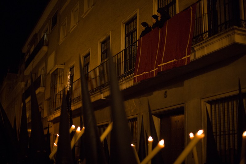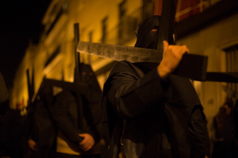During the Holy Week in Sevilla, penitents are walking in processions nights and days.