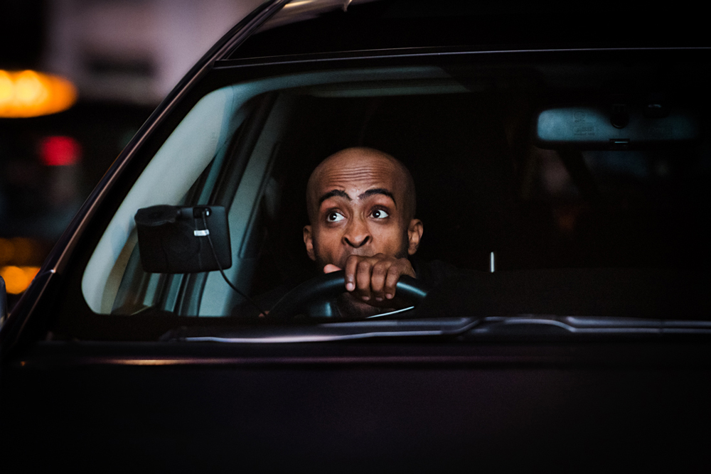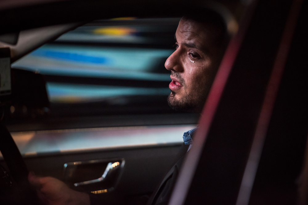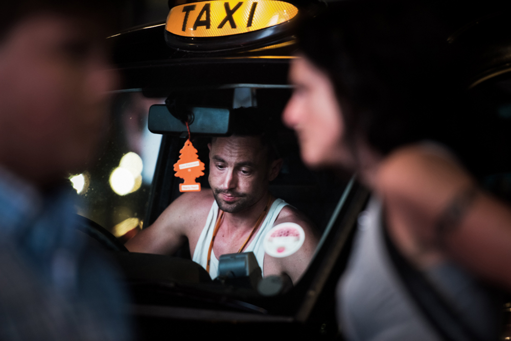 In the heat of the Black Cab debate, Oleg Tolstoy provides a deep and emotional insight into the cab drivers' world. Juxtaposed with an abstract video viewers are taken on a journey through the bustling London streets and quiet respite of the taxi. http://www.theguardian.com/artanddesign/gallery/2015/sep/03/whos-really-driving-you-anxious-taxi-drivers-in-pictures