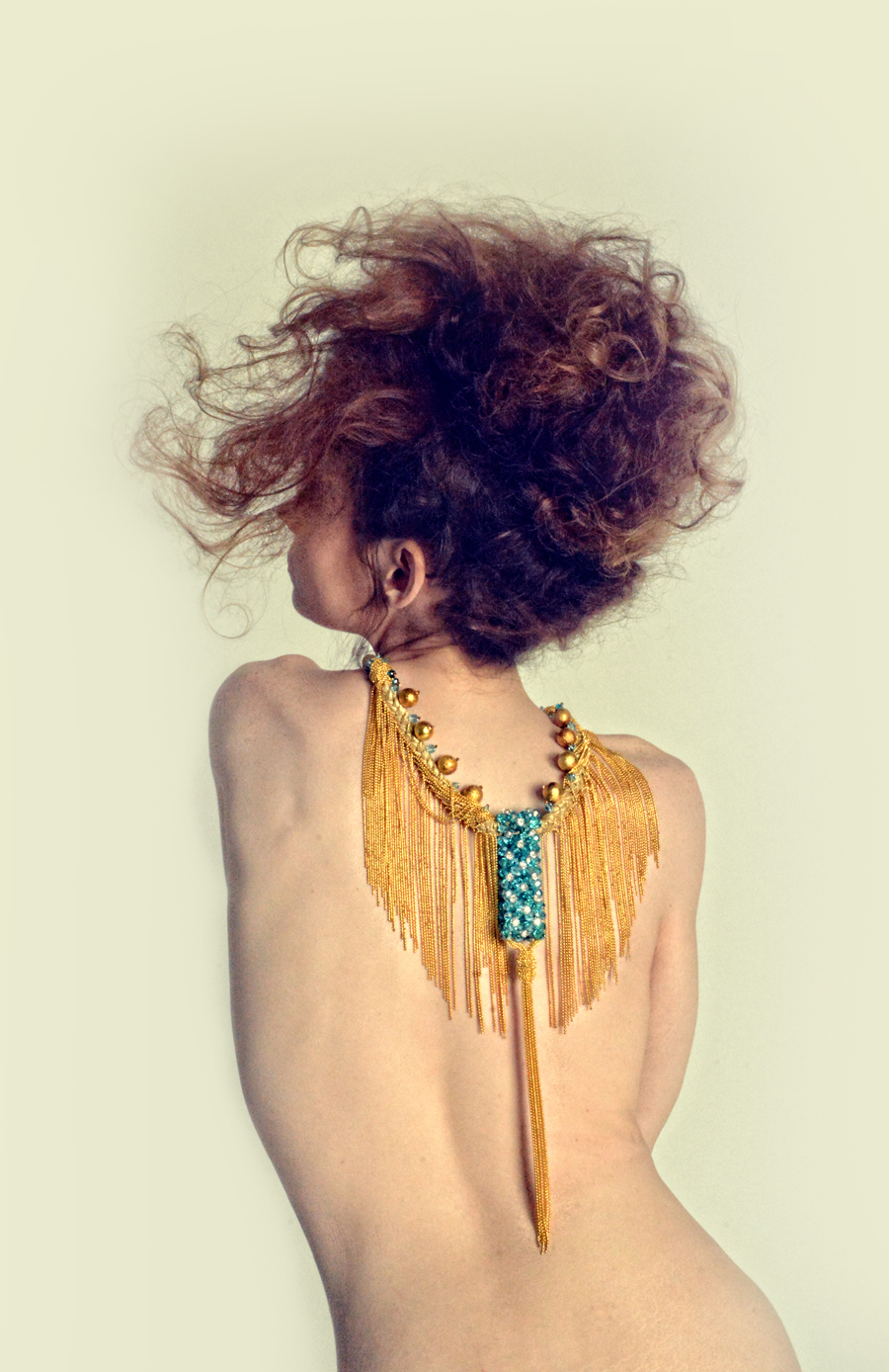 Series of portraits of models Sarah Nicole Ametrine and Kitty Huisman wearing the jewels of Monikque Couture Jewellery. Hair by Brienne Tambini.
