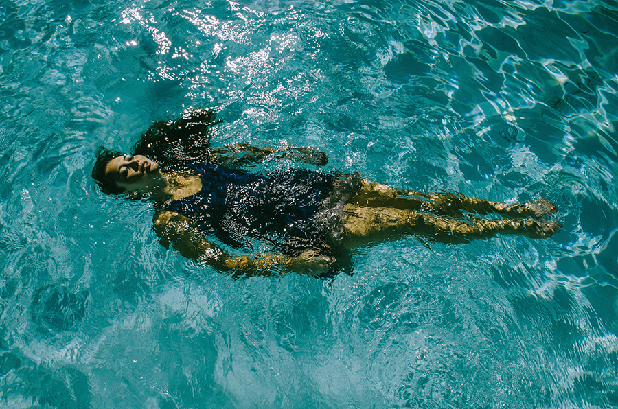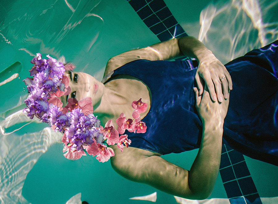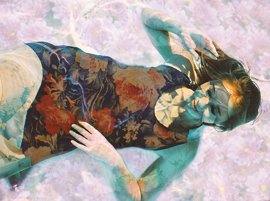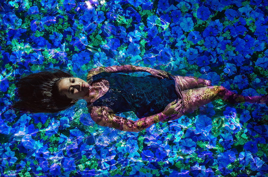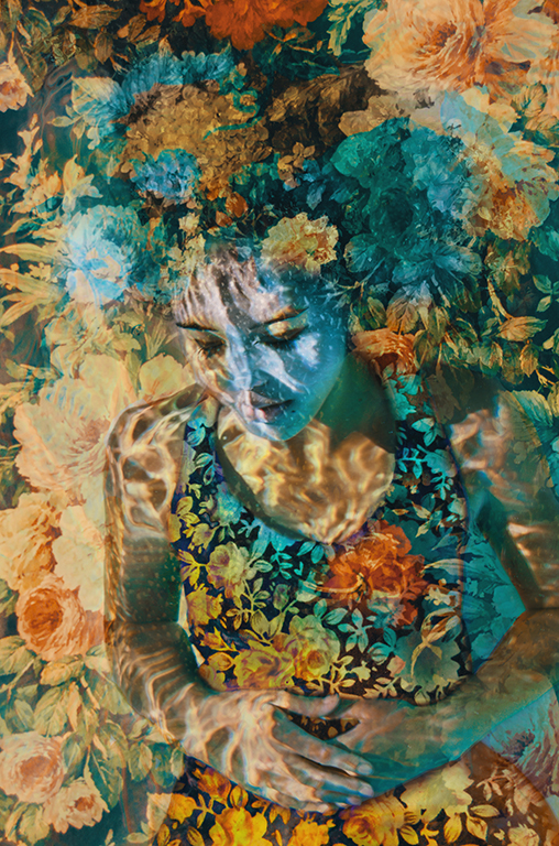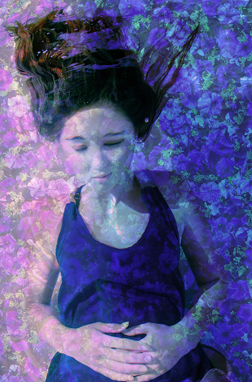 Tranquility is generally achieved through calming surroundings which negate any harsh external stimuli. A soothing way to exclude oneself from the world may include total immersion into one's own mind and body. Depicted in the image the woman is able to achieve a state of calm and serenity by submersing herself in a pool of flora, effectively detaching herself from the outside world. The creation, the life, the power…the water is filled with tremendous energy.
