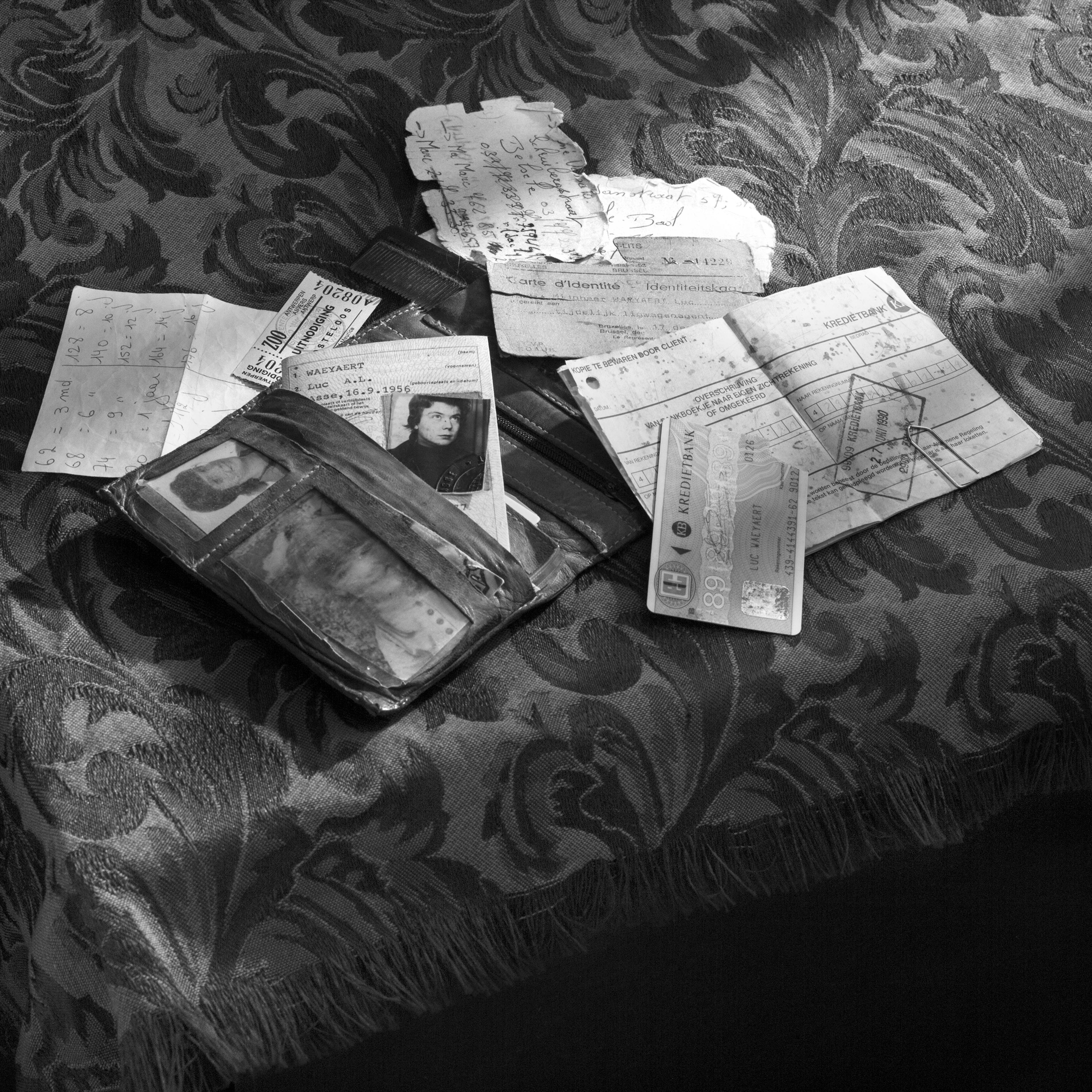 For my final work in my second year of School of Arts in Ghent, I made a series about the remembrance to my father who died when I was a little girl. In 1990 he was killed while he was doing his job, that was working on a sleeping train that went from Brussels to Milan. A couple of pick pockers boarded the train and killed my father by accident. Now 25 years later I wanted to capture a feeling of remembrance about a person I have never really known. I did this by following the same train parcours from Brussels, through Switserland, to the border of Italy. I captured images on and off the train with my analogue Hasselblad Camera. The result is a series of 25 pictures, all framed and presented on a wall, supported by old family pictures and an old news paper article.