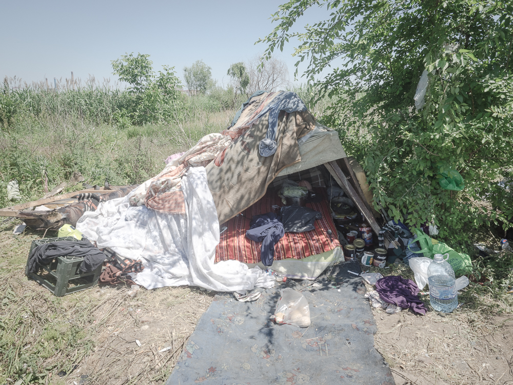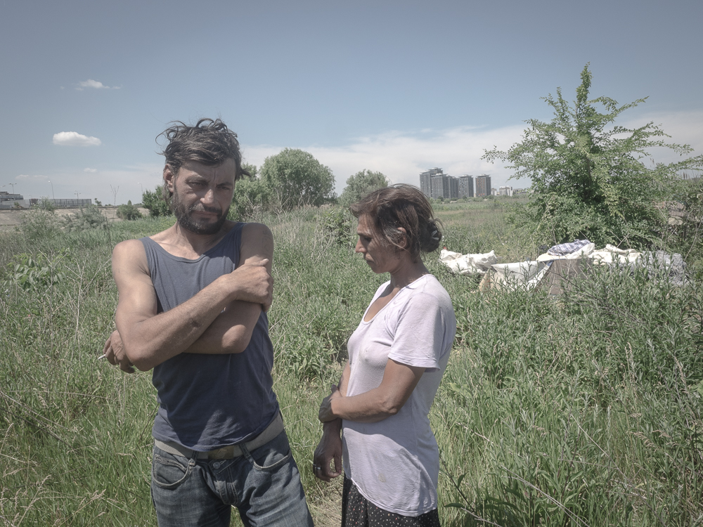 Only a few kilometres away from the historical centre of the capital city of Romania, you can come across an odd “circuit†of concrete. When looking from outside, the concrete block can look like an impenetrable military fortress. During communism lots of ambitious development plans for the country were made. One of these provided for the construction of an artificial lake to be linked to the Dâmbovița river, with the purpose of creating a sort of small harbour in town. After 1989, following the revolution and the fall of regime, the unfinished project was abandoned. Slowly, nature prevailed. Some subterranean springs, not planned by the architects, started to flow from the ground, taking with them some non-endemic fish species. The extended surface slowly changed into a damp area, an urban delta; migratory birds, also not present in the area, found shelter there and evidently brought seeds of different plants. Inside the basin, also some homeless families found a shelter. Initially they built some shacks made of iron plate, which then were demolished by authorities, following the change of plans for the destination of the area, which should now become a protected natural reserve, thus depriving these families of their homes. Currently half a dozen families live inside the area, trying to remain invisible, in order not to be thrown out. None of them has a stable job and they live from small jobs as construction workers or collecting metal scrap to re-sell them. I would like to give a name and a face to some of these persons, who I got to know and opened up with me, telling me their stories: Gabriel and Magda with Furnică, Petrica, Marianna and Florin, Mariuta and Florin, with the hope they can regain their dignity.