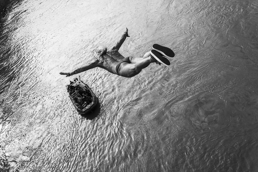 Rome - Maurizio Palmulli, known as 'Mister Ok', dives into the Tiber River from the Cavour bridge, as every first of the year since 1988