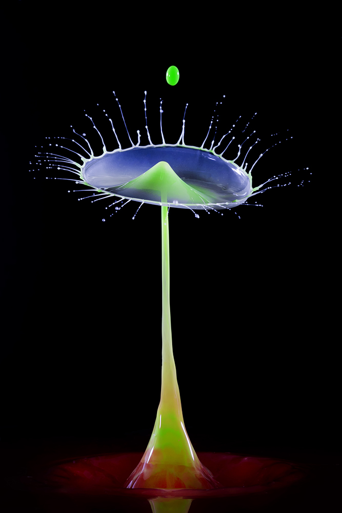 Drop Art, a project started five years ago, the photos are made in the studio, and produced by a collision between two or more drops of water (milk), all in a single click, the colors are made with food coloring, color fluorescent and 4 flash with colored gels, is not used Photoshop to manipulate photos Drop Art, un progetto nato 5 anni fa, le foto vengono realizzate in studio, e prodotte da uno scontro tra 2 o più gocce d'acqua (latte), il tutto in uno scatto solo, le colorazioni vengono fatte con coloranti alimentari, colori fluo e 4 flash con gelatine colorate, non viene usato Photoshop per manipolare le foto