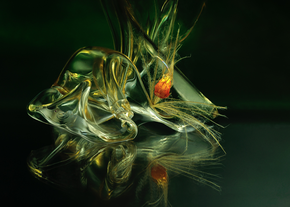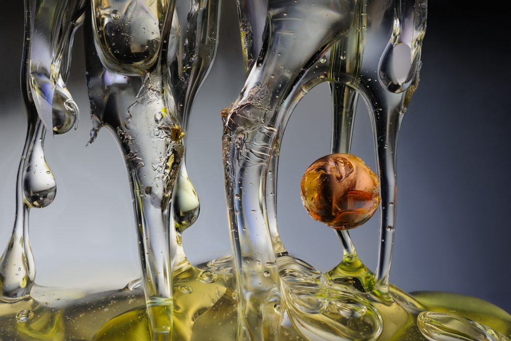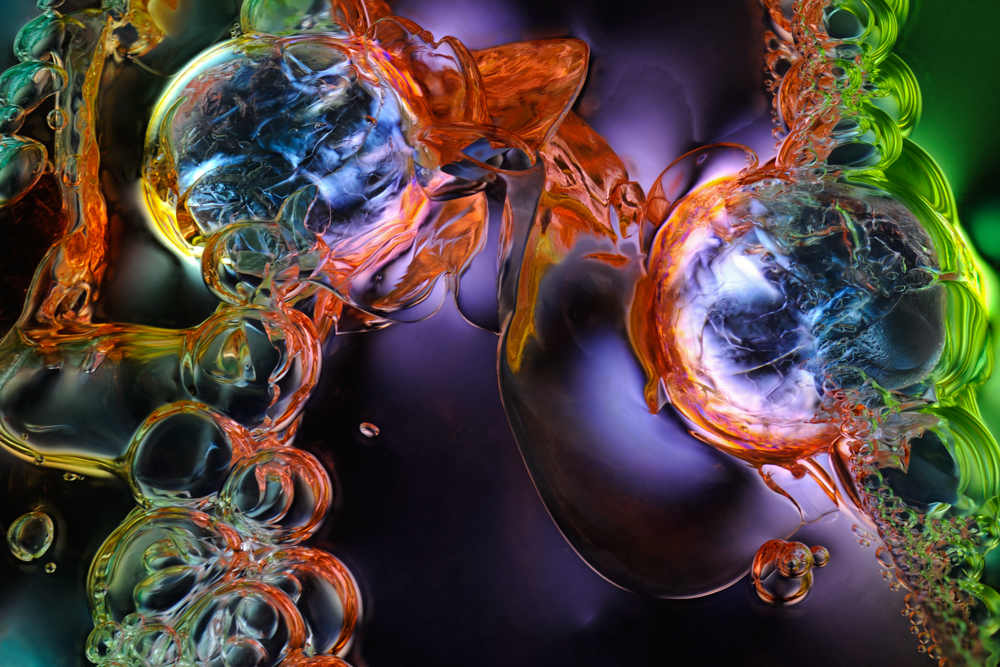 In my photography, I utilize my science background to explore and visualize overpowering forces that compel the natural world to develop life from the amorphous organic matter. To create my otherworldly images of emerging life I sculpt miniature, life-like forms from soft, solidified, color-tinted organic gels, subject them to deformations and capture in the cross-polarized light. Because some gels have photoelastic properties, or abilities to show material stress in the cross-polarized light, the resulting images glow with light and vivid colors, like life forms made out of light.